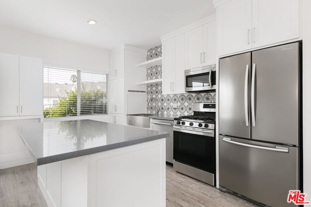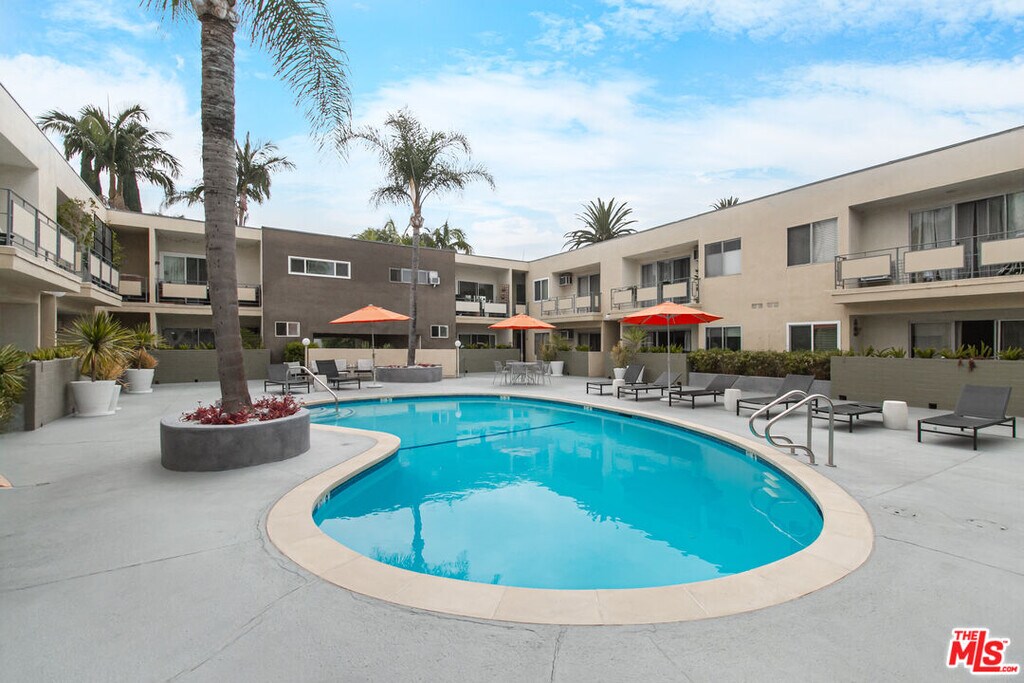 Bask in abundant natural light from morning to late afternoon in this newly renovated, TOP-FLOOR 2-bedroom, 2-bathroom condo, perfectly positioned in a coveted West Hollywood location just north of the iconic Laurel Hardware restaurant. Set within a chic Mid-Century building, the open and airy layout is enhanced by sun-drenched interiors, creating a warm, inviting atmosphere throughout the day. The gourmet kitchen features sleek quartz countertops, a handcrafted tile backsplash, and premium stainless steel appliances, along with the convenience of an in-unit washer/dryer. Both bathrooms have been luxuriously remodeled with in-shower seating, and premium stainless steel fixtures for a spa-inspired feel. Spacious bedrooms offer a serene retreat with designer wallpaper and authentic grasscloth accents for a blend of modern elegance and timeless style. Step onto the expansive covered patio to enjoy peaceful courtyard views framed by lush greenery and a classic kidney-shaped pool. Additional perks include a generously sized storage closet. With Whole Foods, trendy restaurants, and vibrant nightlife all just moments away, this home embodies the best of West Hollywood living in one of its most desirable spots. MLS# 25574419