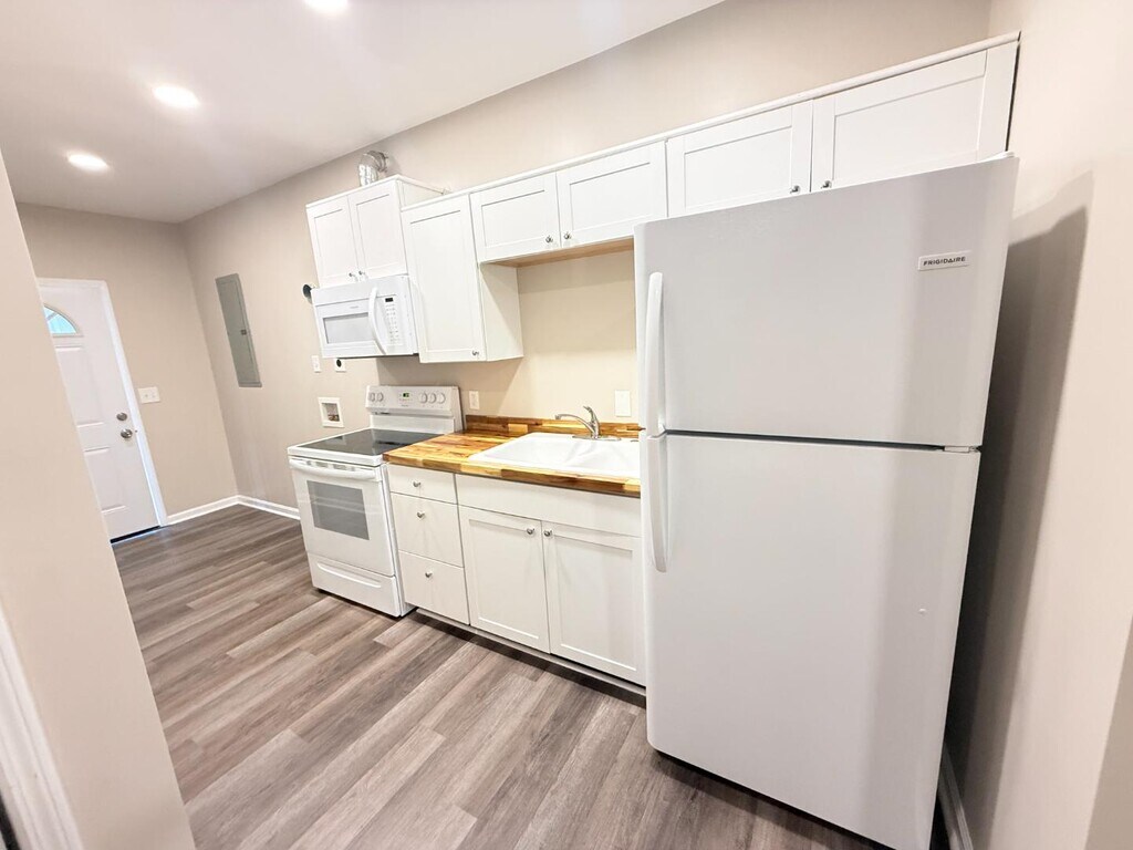 Cozy, recently remodeled 1 bed / 1 bath studio in well maintained triplex. Unit features an open floor plan with high ceilings, butcher block countertops, new appliances, and off-street parking in a private parking area behind the triplex. Unit has hookups for a stackable washer/dryer. WATER/SEWER UTILITIES AND LAWNCARE INCLUDED. Great location, near downtown New Albany and minutes from the Sherman Minton bridge and all the great shopping, dining, and entertainment that New Albany and Louisville has to offer. Minimum rental standards and policies are below.$890 depositWater/Sewer paid by ownerElectric/Cable/internet paid by tenantLawncare provided by ownerNo pets allowedNo smokingAll applicants will be screened for income, rental history and credit Cozy, recently remodeled 1 bed / 1 bath studio in well maintained triplex. Unit features an open floor plan with high ceilings, butcher block countertops, new appliances, and off-street parking in a private parking...