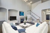 Enjoy life in the master-planned community of Eagle Springs! This spacious,updated home features a primary suite on the main level with an en suite bath,dual vanities,jetted tub,glass shower,and walk-in closet. A convenient half bath is also downstairs. Upstairs includes 3 bedrooms,2 full baths,and a large game room—ideal for family or guests. The open-concept kitchen flows into the living room with a gas fireplace and a wall of windows for natural light. Step outside to a private backyard with a covered patio,perfect for relaxing or dining outdoors. Community amenities include competition pools,splash pads,fitness center,clubhouses,sand volleyball,tennis courts,baseball & soccer fields. No flooding. New dishwasher,stove/oven,microwave,newly painted. Kitchen Cabinets recently painted white. MLS# 36420662