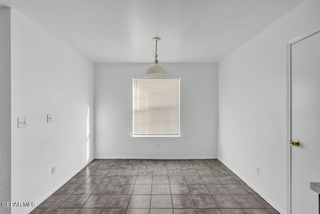 1001 sq ft single story home located just minutes from area schools,parks,shopping and fort bliss. Family room off of entry with an open kitchen and dining area. Primary room with a walk in closet and full bath. Two more secondary rooms along with another full bath. Tile floors throughout except for the bedrooms. One car gargae and a large backyard with a storage shed