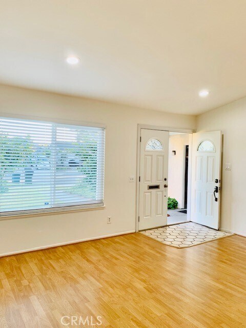 Beautiful 4 bedrooms and 2 bathrooms. Walking distance to Elliott Elementary School, Cerritos High, library and town center. Kids can go to Cerritos High or Whitney High. Good size of master bedroom/bathroom with two closets. The dining area is connected to the kitchen. Double-pane windows and sliding doors for energy efficiency and noise reduction. Laminate floor throughout the house. Cerritos Sculpture Park is across the street. Move-in condition. The rent includes gardening. ** OPEN HOUSE on Oct. 25th,2025** MLS# RS25245585