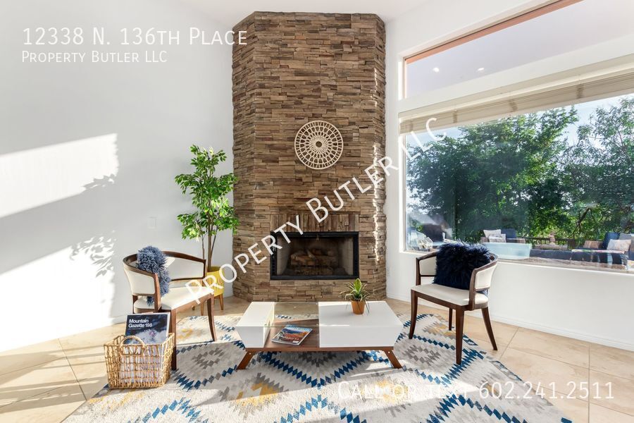 Beautiful 5 Br/4.5ba 4175 Sq ft. Scottsdale Mountain Ranch Home. Peaceful, Secure, Exclusive access gated community with manned guard gate. Enter through a shaded courtyard, to a custom wood and glass front door, to a dramatic high ceiling living area with custom shelves, recessed ceiling lights, gas fireplace. Large windows for lots of natural light throughout. Wet bar nook. Living room has sliding glass door access to patio. Dining Room area is off of kitchen/family room. Stunning stacked stone fireplace in family room with views to the back yard. Amazing chefs kitchen features center island, Thermador professional grade SS appliances, subzero refrigerator, breakfast bar, granite counters, blue subway tiled backsplash, pantry, and upgraded wood cabinetry with stylish hardware. Stainless steel gas range with 6 burners and 2 ovens. Stainless steel microwave and dishwasher. Pantry has kitchen access behind glass door and access from hall. Ample storage space. Features sliding door to back patio. Just beautiful! High-end hardware throughout, plantation shutters, ceiling fans, and recessed lighting. Tiled throughout with only bedrooms being carpeted with brand new carpet. Expansive tiled hallways. Primary suite has recessed lighting, ceiling fan, patio access, large windows to back yard. Custom his & hers walk-in closets, featuring custom built in cabinets. Primary bathroom has his and hers granite vanities, his and hers private water closets and tiled jetted tub. Remodeled marbled tile walk in shower with bench. 3 additional bedrooms have full en suite bathrooms, and ceiling fans. The 4th bedroom without an en suit can be used an office. Renovated $25,000.00 custom heated pool with spa, newly tiled fountains brand new pool equipment. Back yard has great views! Patio has covered eating area with 3 fans. 3 car garage with tons of storage and parking in driveway if needed for a pool party! Irrigated, xeriscaped landscaping with ample shaded area and dedicated grass area in backyard. Pool service and Landscaper are paid by owner and are serviced weekly. 12-month lease minimum. A non-refundable $40.00 credit check and background screen per adult. Applications available at - Available Homes. No evictions, judgement for damages or past due rent. Pets are on a case by case basis and if approved there is a $250.00 non-refundable pet deposit per pet. Renter insurance is required. Tenant responsible for utilities with City of Scottsdale Water/Sewer/Trash, SW Gas, & Salt River Project/Electric. Internet wired for Cox cable, also wired for a Security system of your choosing. For more information or to apply in advance please visit Pool And Landscaper Are Paid By The Owner