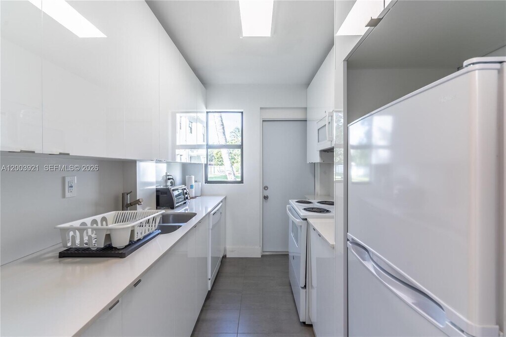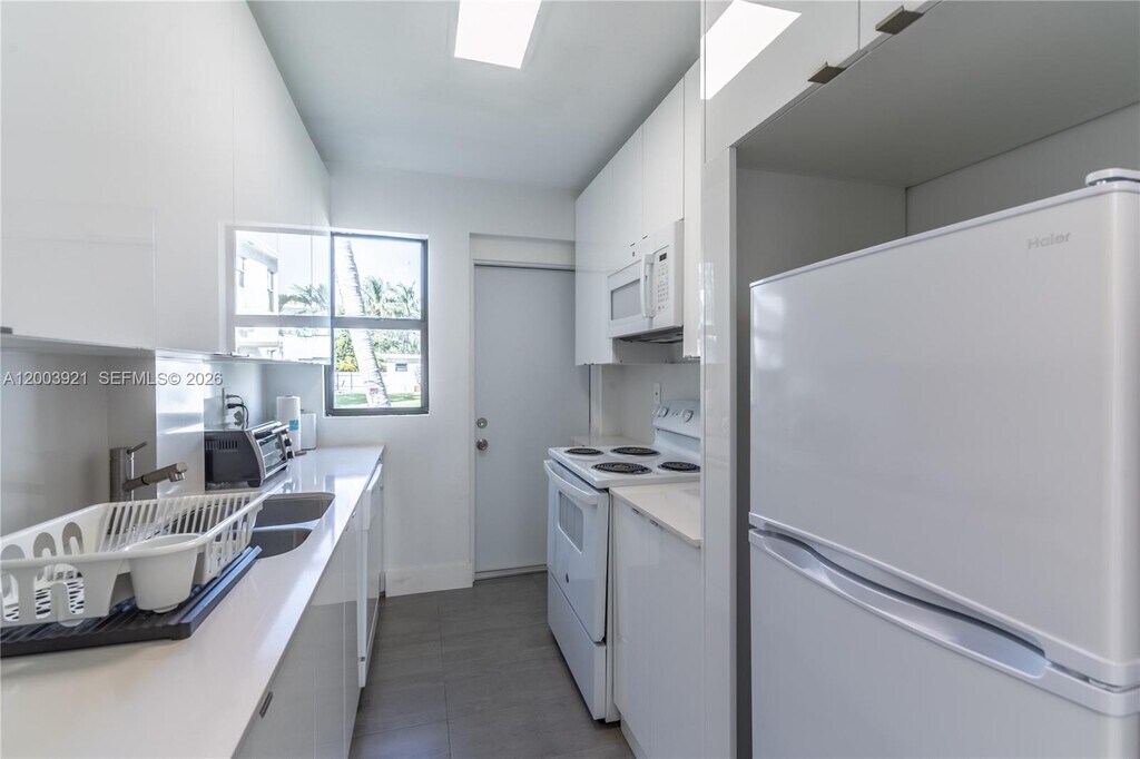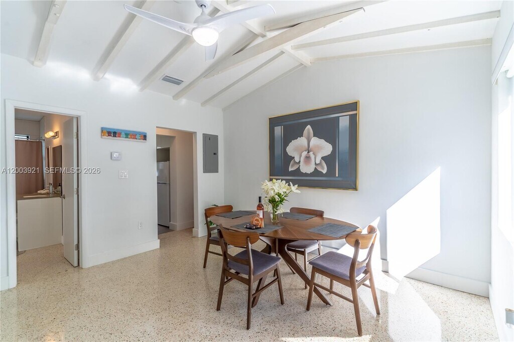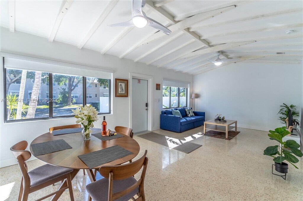 This stylish, fully renovated, and thoughtfully furnished one-bedroom, one-bathroom apartment offers both comfort and convenience in a beautifully designed space in the Biscayne Park area. The open, airy living room features high vaulted ceilings that fill the space with natural light, creating a bright and inviting atmosphere. It includes a 55†Smart TV, a queen-sized sofa bed for additional sleeping arrangements, a dedicated laptop-friendly workspace, and a dining area that comfortably seats four. The fully equipped kitchen provides everything you need to prepare meals at home, along with convenient extras such as a coffee maker, blender, toaster, and dishwasher for effortless cleanup.The bedroom is designed for relaxation, featuring a king-sized bed and a mirrored closet with ample storage space to help you settle in with ease. A full bathroom includes a tub/shower combination along with modern fixtures and finishes. Residents also enjoy access to shared community spaces, including a beautifully maintained backyard with a pool, deck, and comfortable seating areas—perfect for relaxing. The property includes two assigned parking spaces conveniently located directly in front of the unit. Rent covers all utilities, including electricity, water, and high-speed fiber optic Wi-Fi. Lease terms are available for six or twelve months, with a maximum occupancy of two residents. MLS # A12003921