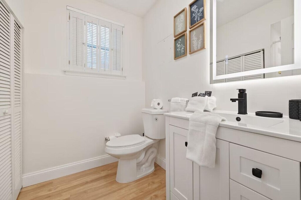 Feel at home in this modern, comfortable, and functional basement with a separate entrance, only a 5-minute drive from downtown Reston. Enjoy the convenience of a fully equipped kitchen and a luxurious full bathroom. An extra pet fee applies; please inquire about fees before booking. This is a private basement with a separate entrance and no shared spaces. The main level is rented separately. [SI]