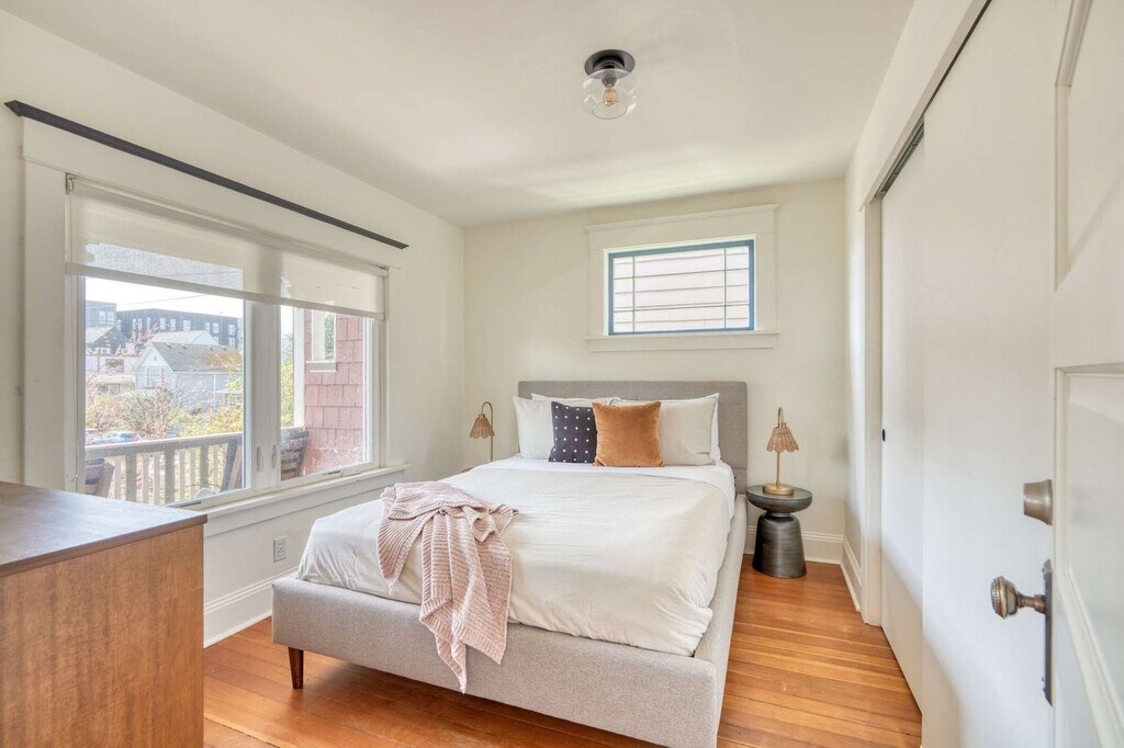 Experience the best of Portland in this stylish 4-bedroom, 2-bath home in the Overlook neighborhood, steps from Mississippi Avenue. Ideal for families, groups, or business travelers, it offers a spacious layout, modern amenities, and a quiet street near top bars, restaurants, and shops. Enjoy natural light, a fully equipped kitchen, 4K Smart TV, and a welcoming space perfect for short or extended stays. This home features four bedrooms, each with plush bedding and plenty of storage, and two full bathrooms with fresh towels and essential toiletries. Central heating and air conditioning ensure year-round comfort. The fully equipped kitchen comes with modern appliances, cookware, and a breakfast nook. Enjoy the stylish open-concept living and dining areas with hardwood floors, a 4K Smart TV with streaming capabilities, high-speed Wi-Fi for remote work or streaming, and an in-unit washer and dryer. The kid-friendly layout provides space to spread out, and the decor is thoughtfully curated with Portland personality. Street parking is free and typically available right in front of the house. Located in Portland’s sought-after Overlook neighborhood, this home is just one block from Mississippi Avenue—a lively hub of Portland culture. Walk to some of the city’s best restaurants, breweries, coffee shops, music venues, and local boutiques. The neighborhood is known for its walkability, friendly feel, and easy access to transit. It’s a 5-minute drive to downtown Portland, and the property is close to MAX light rail, bus lines, and freeway access for convenient travel around the metro area. The home is just a 5-minute walk from the MAX Yellow Line at the Overlook Park station, providing direct access to downtown Portland, the Moda Center, and Union Station. Multiple TriMet bus routes also run nearby, and rideshare options are quick and easy. Whether you’re exploring by car, bike, or public transit, getting around is simple and convenient from this central location. Quiet hours are between 22:00 and 8:00. [SI]