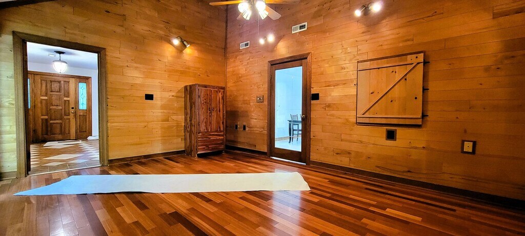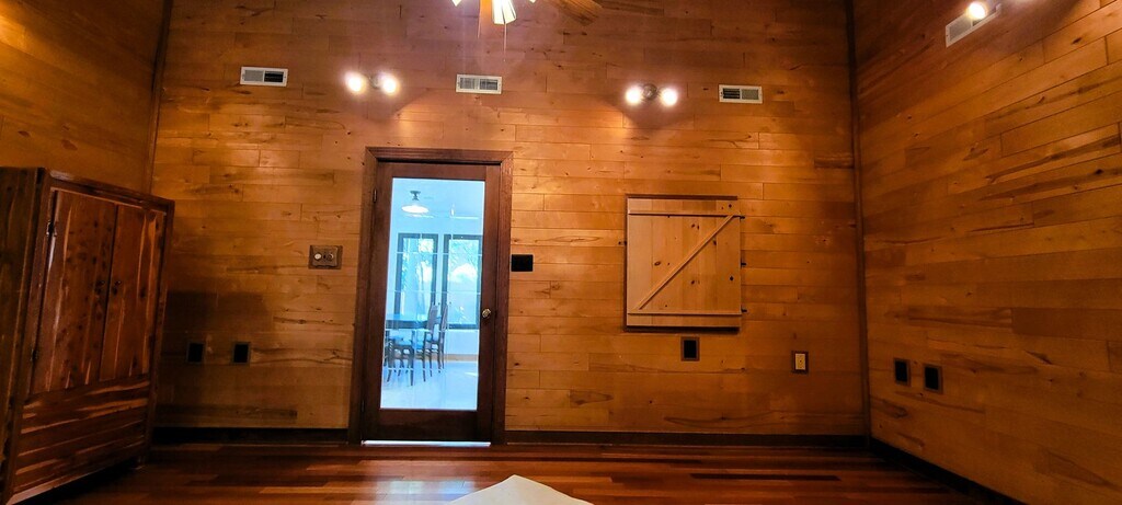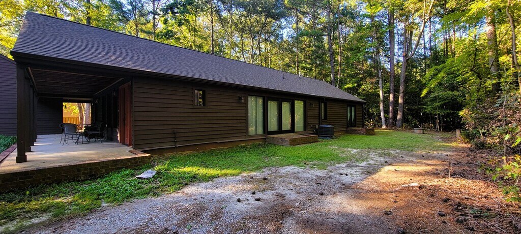 Remodeled secluded wooded oasis off of Qualla Road with handicap access. Property features include ceramic tile floors, hardwood floors, large covered front porch, detached oversized 1 car garage, new laminate kitchen countertops, custom soft close kitchen cabinets, separate laundry room with wash sink, zero entry primary bath shower, and plenty of concrete patio space. Please do not disturb Tenant in place. You must have a scheduled showing to view.