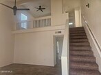 Delightful two story home with 3 bedrooms and 2 baths + loft,new carpet upstairs,spacious kitchen with refrigerator,microwave and gas range! Private master bedroom downstairs,2 bedrooms plus loft upstairs. Backyard with covered patio; Rockscaped front yard,Over-sized 1 car garage. 'All information is deemed reliable but not guaranteed.' No pets are allowed