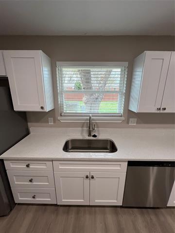 Charming 3 bedroom 2 bath 2 car garage in an established neighborhood with mature trees. Beautiful luxury vinyl flooring throughout. Open and airy with plenty of natural light. Chef's kitchen offers white cabinets, double sink and ample countertop space. French doors lead to a large fenced in yard would be great for kids and pets to play. Additional 5x4 storage. Close to major highways, parks and shopping. Move-in Special - Enjoy a waived administration fee when you submit all required documentation and your full deposit within 72 hours of applying. Offer available until April 30th.