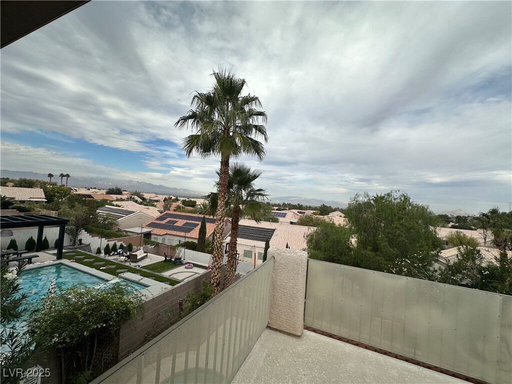 Fabulous Strip and Mountain Views! Great 3 bedroom 2.5 baths. New carpet, touched up paint. All Appliances, including Microwave! Tile t/o down stairs, carpet upstairs. Huge Master bedroom w/retreat & balcony. Dual sinks in master w/separate tub/shower. Island Kitchen w/tile counters, pantry. Covered patio! Sep. Living & Family Rms. Loft. Rent includes pool service, trash and hvac filters. 1-2 small well behaved dogs considered with additional deposits, under 20 lbs each at maturity