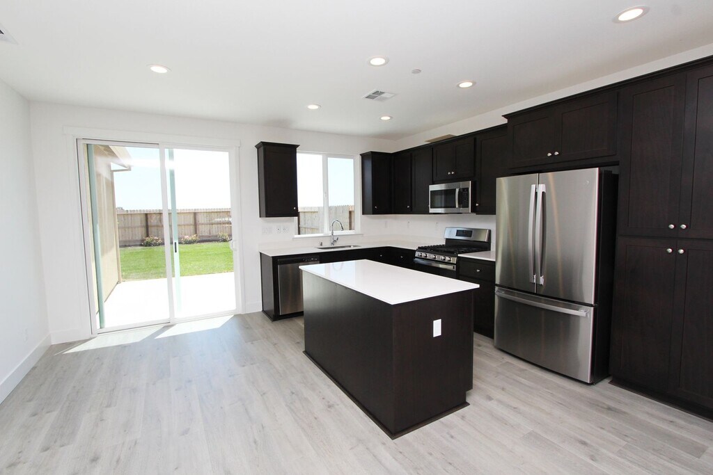 Beautiful Anderson built home! Located in a great southside Los Banos neighborhood near WalMart and Target, this single-story home features high end finishes including quartz kitchen countertops, tile, laminate, and carpet flooring, cozy great room, and more: Premium appliances including refrigerator, washer, and dryer Upgraded solar panels that reduce electricity bills Beautifully landscaped front and back yards with patios Landscape maintenance included in the rent Window coverings throughout the home Security deposit required. Pets allowed with an additional $100 monthly rent charge. 2 Pet Maximum