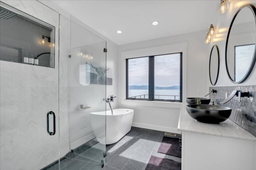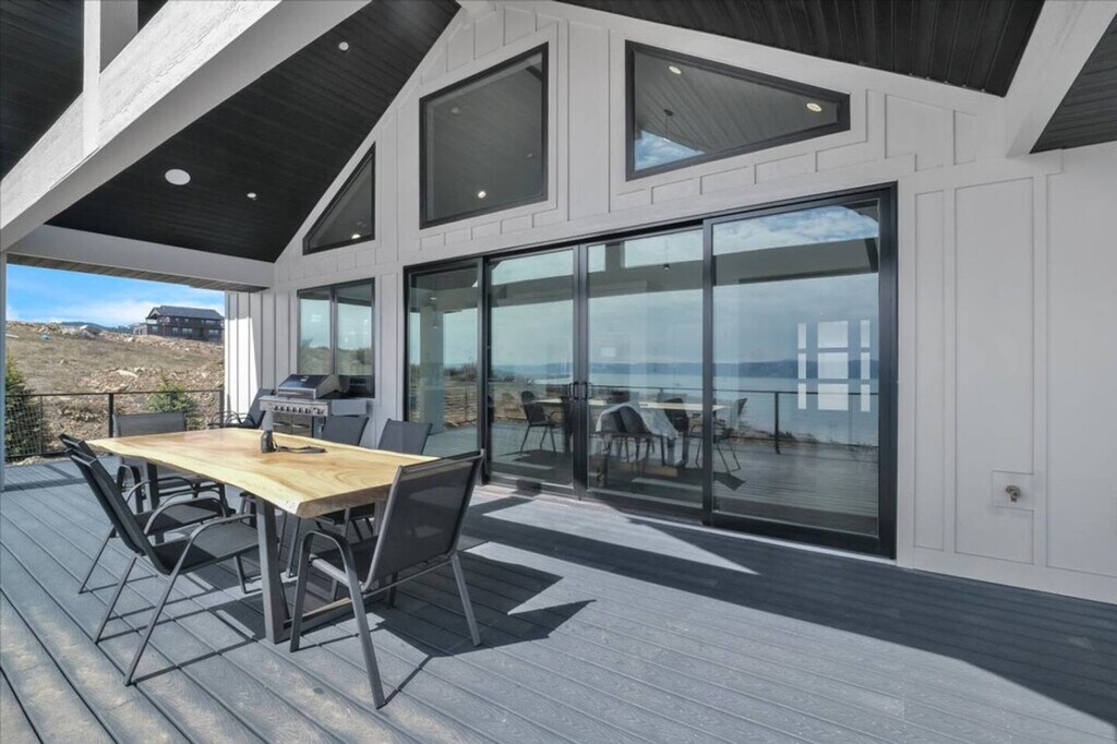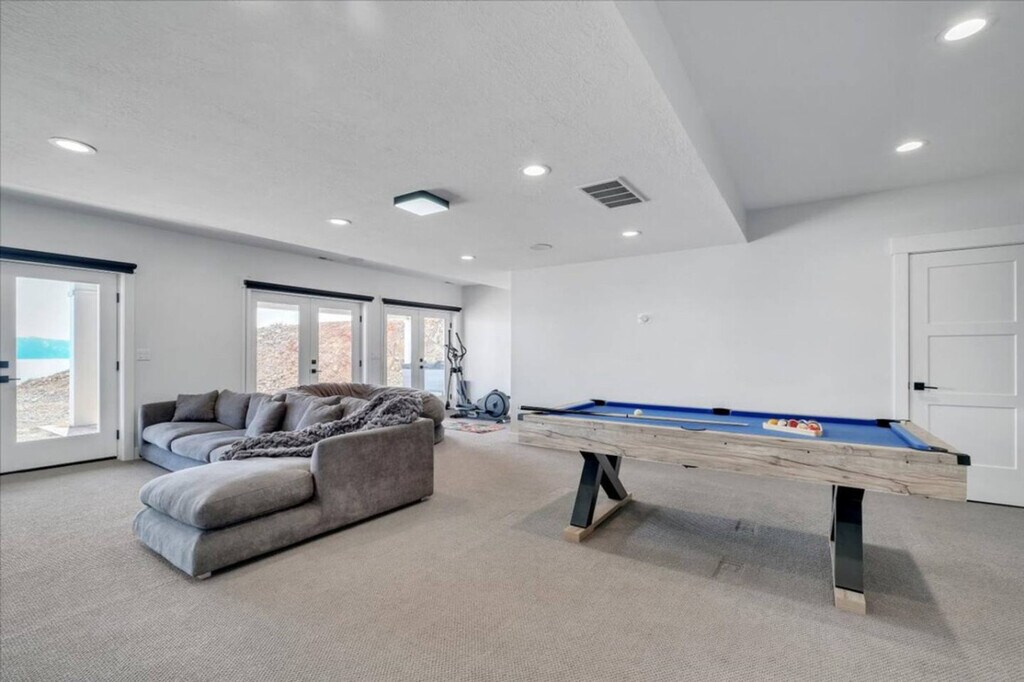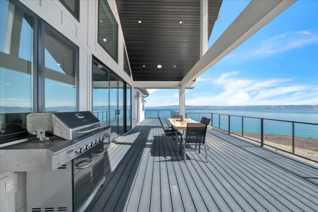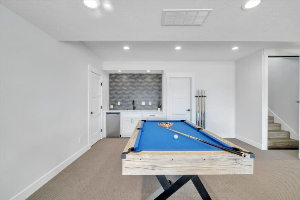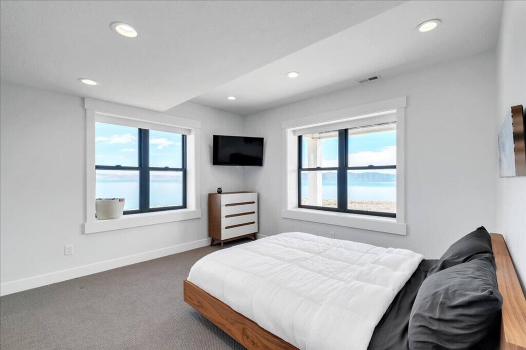 Feel at home in this modern lakeview home in Bear Lake, thoughtfully designed for comfort, flexibility, and elevated mountain living. This home is perfect for summer stays, professionals in transition, or families looking for a refined seasonal escape. This home offers open-concept living with large windows that bring in natural light and showcase the surrounding scenery. The lower level also includes additional living space, making it ideal for group stays. Outside, enjoy panoramic views of Bear Lake and the surrounding mountains. Amenities include a pool table, wet bar, and entertainment lounge. Parking is available in the driveway for approximately 6–7 vehicles. The garage is not available for guest use. Pet-friendly properties allow pets at the cost of $10 per pet per day. For unauthorized pets, a $250 fee will be assessed. This property offers a peaceful setting just minutes from Bear Lake access and trail systems and is about 30 minutes from Beaver Mountain Ski Resort. Smoking or vaping is not allowed on the premises. A $200 per day fee will be assessed for each day of the reservation if it is found that guests have been smoking or vaping on the premises. Quiet hours begin at 10:00 PM each night and continue until sunrise. Moving furniture is not allowed. A $500 fee will be assessed if the cleaners have to move furniture to reset the property for the next guest. All garbage must be bagged and stowed in the bins located on the property. A $30 fee, per bin, will be assessed for unbagged garbage found in the bins. [SI]