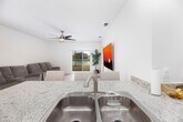 This charming 3-bedroom, 2-bathroom home offers stunning lake views from both the living area and the owner's suite. Lawn care is included for added convenience. The dining and living spaces are embraced in natural light, creating a bright and welcoming atmosphere. The owner's suite is a peaceful retreat, complete with a spacious walk-in closet, double sinks, and a generously sized walk-in shower. The open-concept kitchen seamlessly flows into the family room and overlooks the covered patio, perfect for entertaining.