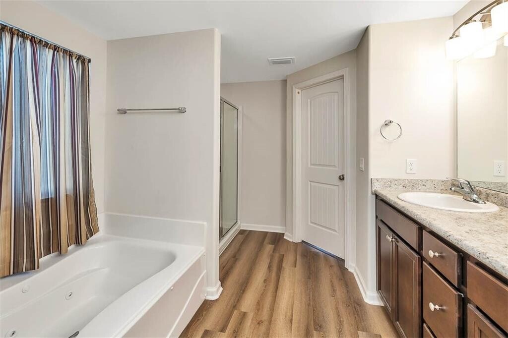 This spotless four bedroom, three bath home was built in 2020 and features two primary suites, double vanities, walk in shower, jetted tub, eat in kitchen with gas stove, screened patio, fenced backyard, and two car garage. Rent includes washer/dryer, yard maintenance, and internet. NO PETS.