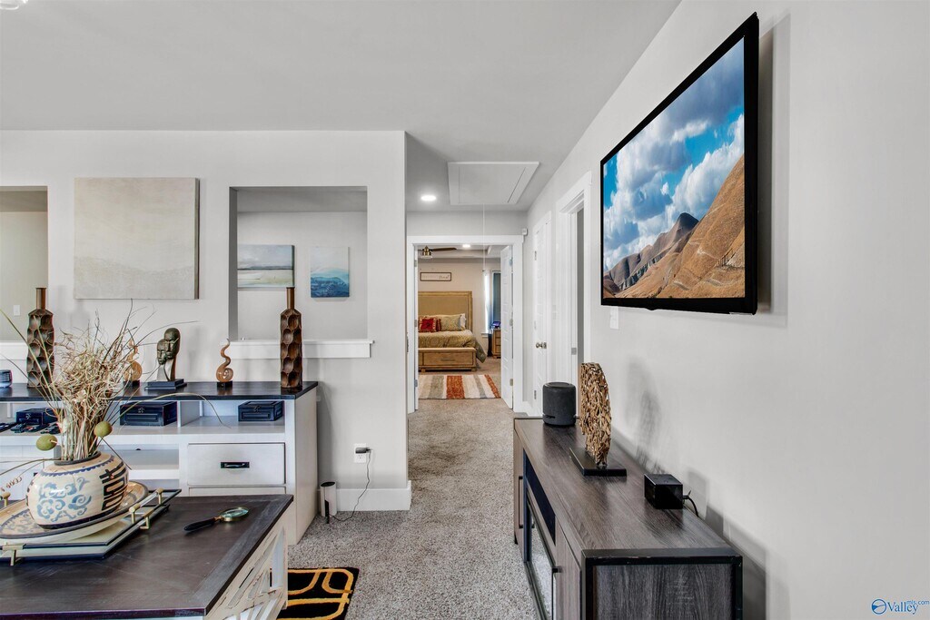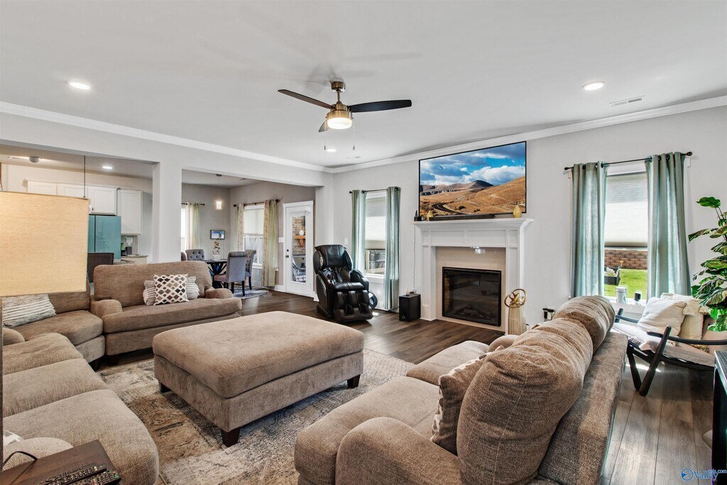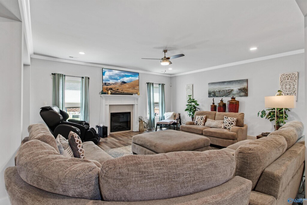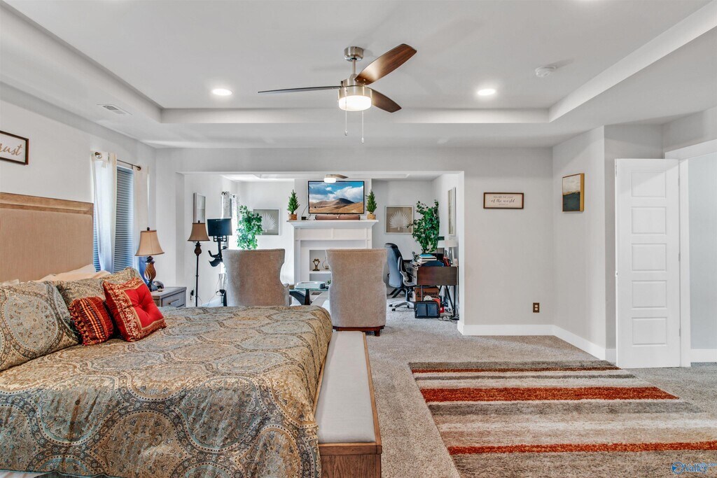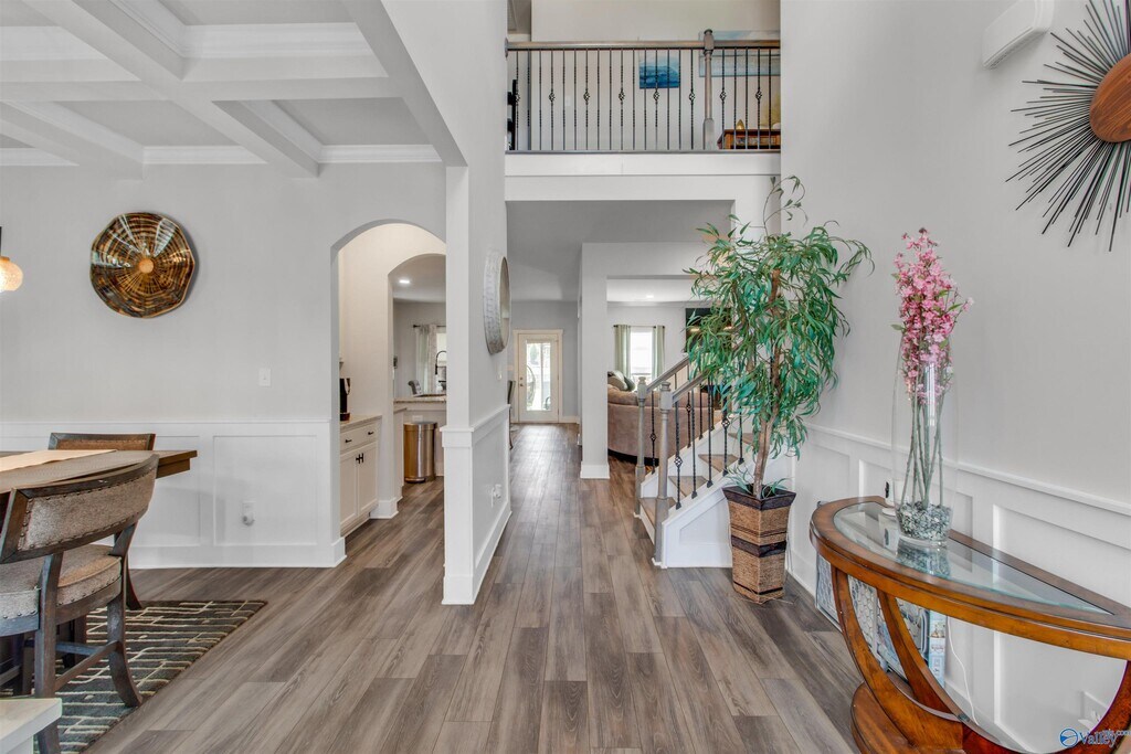 This elegant 5-bedroom/4-bathroom home is located minutes from Redstone Arsenal and Towne Madison. The chef-inspired kitchen boasts stainless-steel appliances,an overly large island,and an eat-in area that flows into the open great room,a private en-suite bedroom,a formal dining room,and a Butler’s Pantry. The expansive 900 sq ft Primary Bedroom is combined with a sitting area,two walk-in closets,and an exquisite bathroom. Enjoy time in the upstairs bonus room. The backyard is an oasis for entertainment,relaxation,or a vacation at home,featuring a screened-in back patio,a cozy fireplace,a large backyard,and your own Koi Pond.