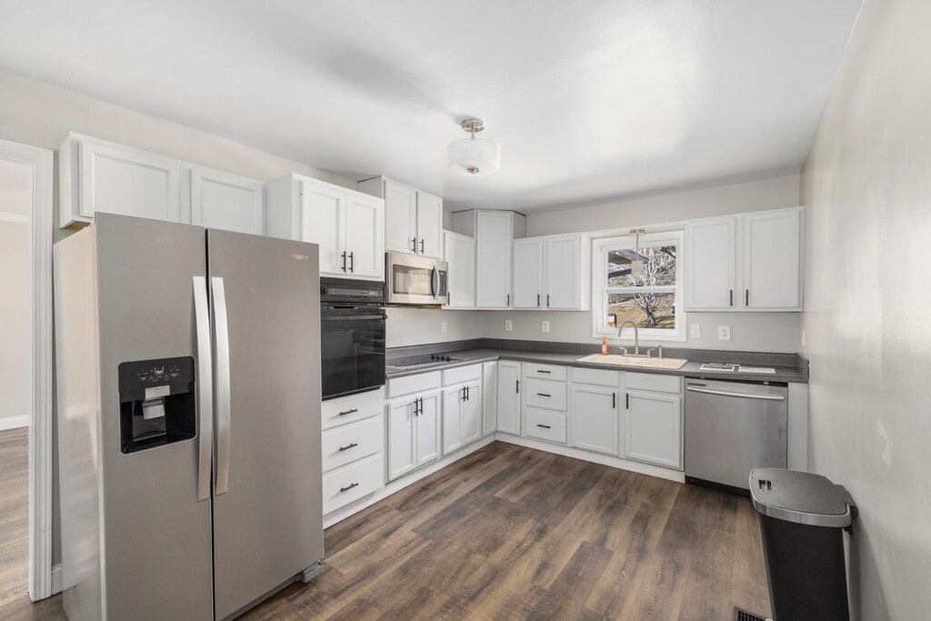 Updated 3BR/2BA Single-Level Home for Rent – Elizabethton, TNThis updated 3-bedroom, 2-bath single-level rental home sits on a quiet cul-de-sac just minutes from downtown Elizabethton. Home features include a split-bedroom layout, updated flooring, and a bright kitchen with stainless steel appliances, white cabinetry, and an eat-in dining area.Primary bedroom includes a private full bath. Two additional bedrooms share an updated bathroom with custom tilework. Outdoor features include a new Trex deck, covered front porch, large yard, and a detached storage building. Gravel driveway provides multiple parking spaces.Located near schools, shopping, parks, and the Cherokee National Forest with quick access to major roads.