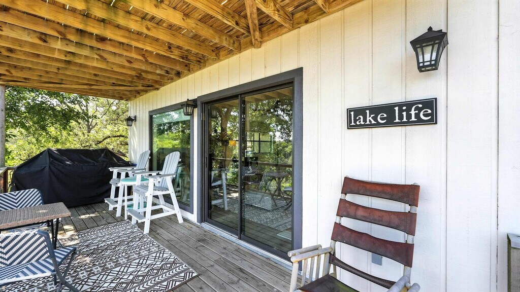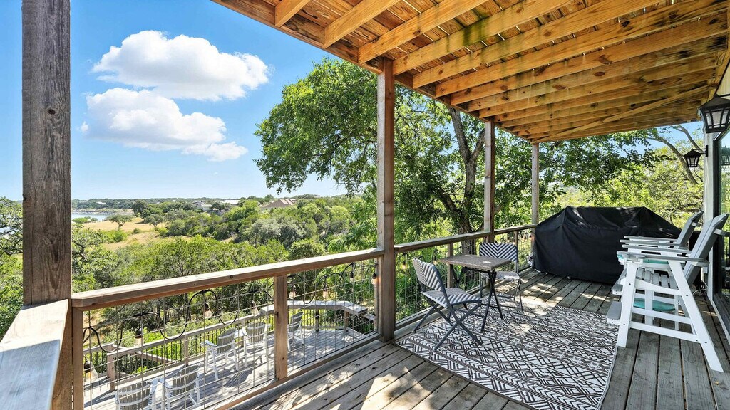 Feel at home in this 4-bedroom, 2-bath home, offering a relaxing and fun-filled vacation with access to beautiful Canyon Lake. Step into a serene sanctuary where tranquility meets modern comfort. Thoughtfully designed with clean, modern decor—soft neutrals, natural textures, and minimalist accents—it exudes a calm, uncluttered elegance. The atmosphere is warm and inviting, with cozy touches that make it feel like home. The main deck has a patio with a huge barbecue pit for grilling. All bedrooms and the living room have smart TVs. Enjoy the spacious lower patio and hot tub. Tucked away in a secluded, peaceful setting, this neighborhood is a true hidden gem. Exceptionally quiet and surrounded by nature, it offers a rare sense of calm and privacy. Local wildlife—deer, birds, and other gentle creatures—can often be seen roaming freely, adding to the area's natural charm. With stunning views of rolling hills, wooded landscapes, or open skies, every moment here feels like a retreat. Boat ramp access is approximately 100 yards away, and the open windows in the living area make it easy to see the beautiful lake. A vehicle is recommended to get around the city. Quiet hours are between 10 PM and 7 AM. Use amenities at your own risk, as there is no lifeguard on duty. Respect the house like your own home. There is a $50 fee for every alarm mishap if the alarm panel located in the hallway by the downstairs bathroom is touched. Please be respectful of the neighbors. Drought conditions will affect the water levels for this property, so please know that the pictures may not reflect the true level of water during your stay. Refunds or cancellations are not available due to low water levels. Registration Number: L1813 [SI]