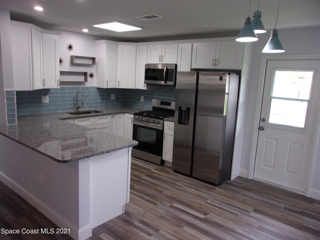 Gorgeous home waiting for you! Kitchen complete with white shaker cabinets,stainless steel appliance package,granite counters and a modern tropical back splash. All bathrooms have been completely remodeled including tile,showers,tubs,vanities and all fixtures. Vinyl plank flooring thought out the living areas including the bedrooms. All this on a corner lot. The owner will consider a cat but NO DOGS.