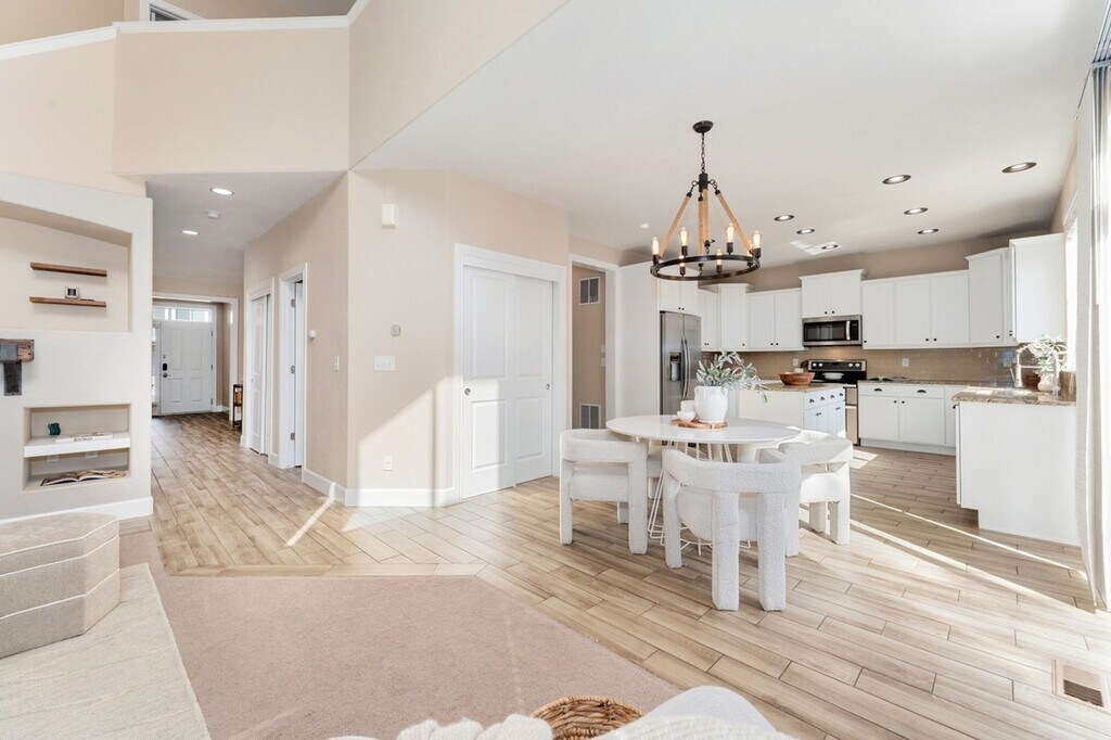 Available NOW! Make this gorgeous home yours! Open your door to this grand home with soaring ceilings and open-concept living. Generously sized family room with an adjoining kitchen features granite counters, stainless steel appliances, and stylish tile floors. Down the hall is a formal dining room, a half bath, and a den with stylish glass French doors. A spacious laundry room is also located just beyond the kitchen. Upstairs you will find an enormous primary suite with an adjoining sitting room with a 3-sided fireplace. The large walk-in closet and your own private 5pc bath with double vanities, a luxurious soaking tub, and a walk-in shower. Two additional and very spacious bedrooms share the main full bath. In the basement, you will find the fourth bedroom and a bright room that could be utilized as a rec room, gym, office, playroom, or movie room. The backyard is fully fenced with a patio and turf for all-year no maintenance beauty. Enjoy all the amenities of Lowry - parks, schools, and restaurants, without the high taxes! Dogs ok up to two with an additional $300 deposit pet deposit and pet rent of $35 no aggressive breeds. Applicant has the right to provide Evolve Real Estate and Property Management with a Portable Tenant Screening Report (PTSR) that is not more than 30 days old, as defined in § 38-12-902(2.5), Colorado Revised Statutes; and 2) if Applicant provides Evolve Real Estate and Property Management with a PTSR, Evolve Real Estate and Property Management is prohibited from: a) charging Applicant a rental application fee; or b) charging Applicant a fee for Evolve Real Estate and Property Management to access or use the PTSR. YouTube: Facebook Live Walk-Thru: