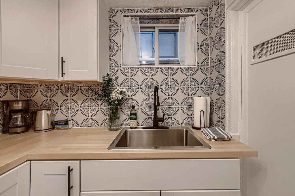 Unit 4 at 1240 N York St is a cozy 525 sqft basement 1-bedroom apartment with direct access from the front patio. It features a work-from-home space in the den and a large sink with a drying rack, though it lacks a dishwasher. Newly renovated and furnished in Spring 2022, this apartment offers a comfortable queen bed and a well-stocked kitchen. Enjoy the communal back deck, grill, outdoor dining table, and fenced backyard in a safe and walkable neighborhood. This apartment is newly renovated and furnished by a designer, featuring a comfy queen bed with linens and a stocked kitchen. It includes all utilities, parking, and internet, valued at over $150 per month. The apartment offers fast internet with 300mbps download and 10mbps upload speeds, a smart TV for streaming services, and free communal laundry in the basement. The apartment includes one dedicated parking space, labeled 4S, and street parking is free and available on the block. Pet rent is $90 per dog per month, with a strict no cats policy. Additional pet-related fees may apply for damage or excessive cleaning, and pets are not allowed on furniture. Located just 3 blocks from Cheesman Park and Botanic Gardens and 4 blocks from City Park, this apartment is ideally situated. It's a 5-minute drive to Sprouts Farmers Market, Ideal Market, Whole Foods, and King Soopers, and 5 minutes to Cherry Creek Shopping District. Downtown Denver, RiNo, and LoHi are just 12 minutes away, while Red Rocks is a 30-minute drive and ski resorts are 1 hour and 30 minutes away. Nearby hospitals include St Joseph, Presbyterian St Luke’s, and Rose, all within 7 minutes, and UC Health University of CO and Children’s Hospital CO are 20 minutes away. The property is a long-term furnished rental, not a full-service hotel, with team availability during business hours and for emergencies. Guests control window AC units and fans, while central heat is managed by the host. All properties are non-smoking and non-vaping, with fees for violations. Noise disturbances may result in eviction without refund. Check-out time is 10 AM, with a $50 fee for every additional 30 minutes past check-out. Guests are responsible for removing personal property at check-out, with a minimum $50 fee for returning items left behind. Maintenance issues are addressed promptly, but no rent reductions are made for mechanical failures or construction in the area. The apartment features a work-from-home space in the den, providing a convenient setup for remote work. [SI]