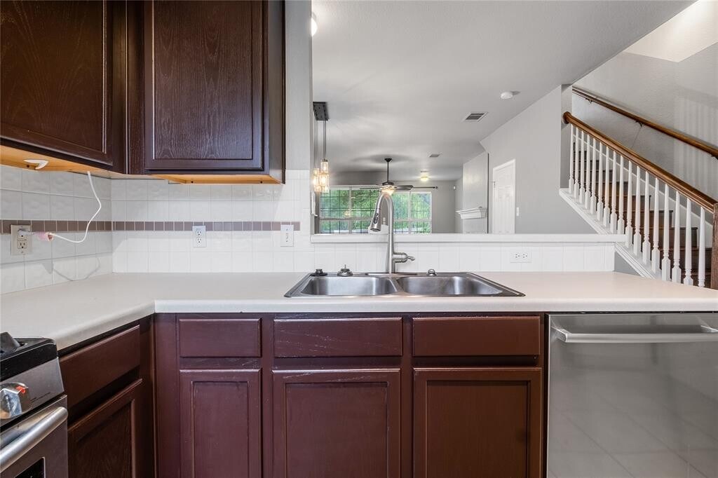 Spacious, 2/2.5 corner unit townhome in Los Indios! Open, airy, living room adorned with abundant natural light, wood floors and fireplace, leads to contemporary kitchen highlighted with stainless steel appliance suite and separate pantry. Both upstairs carpeted bedrooms boast ensuite bathrooms, ceiling fans and generous closet space. Double vanity and garden tub in primary suite. Half bath downstairs; Full-sized washer and dryer in upstairs utility closet. One reserved parking space. Peaceful, quiet, gated property with inviting community pool. Easy access to 183, 45/Mopac, McNeil. Available for immediate occupancy.