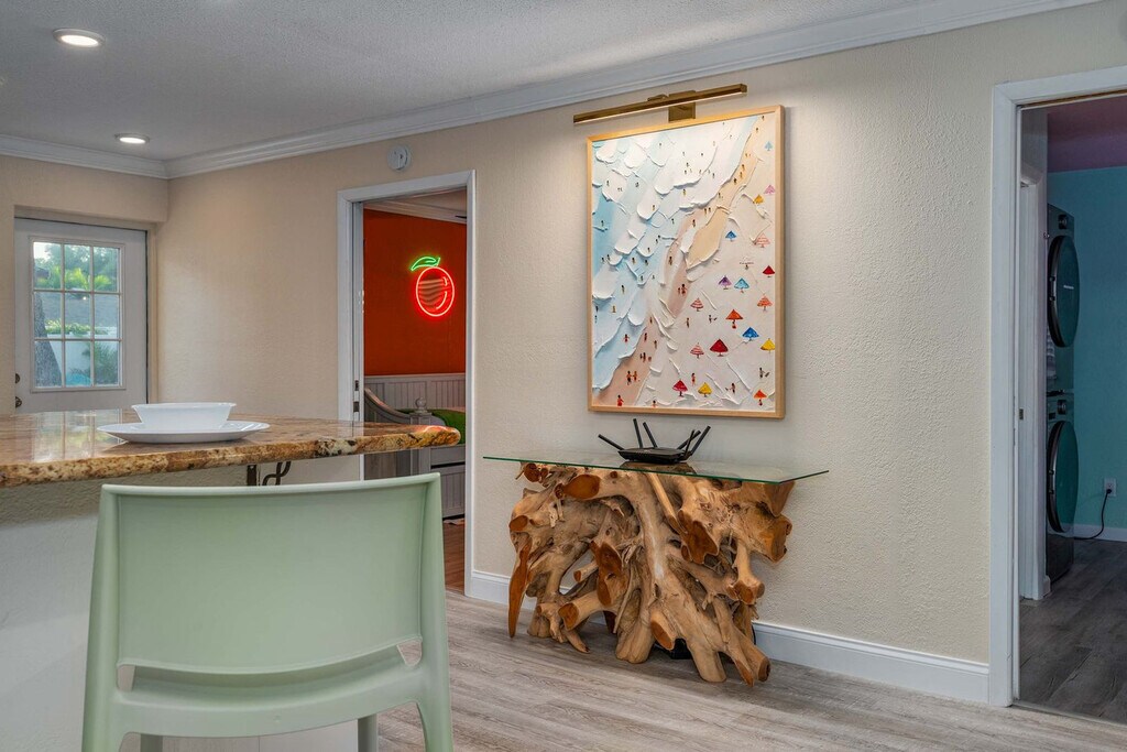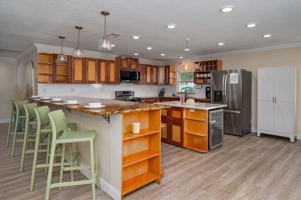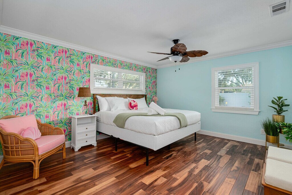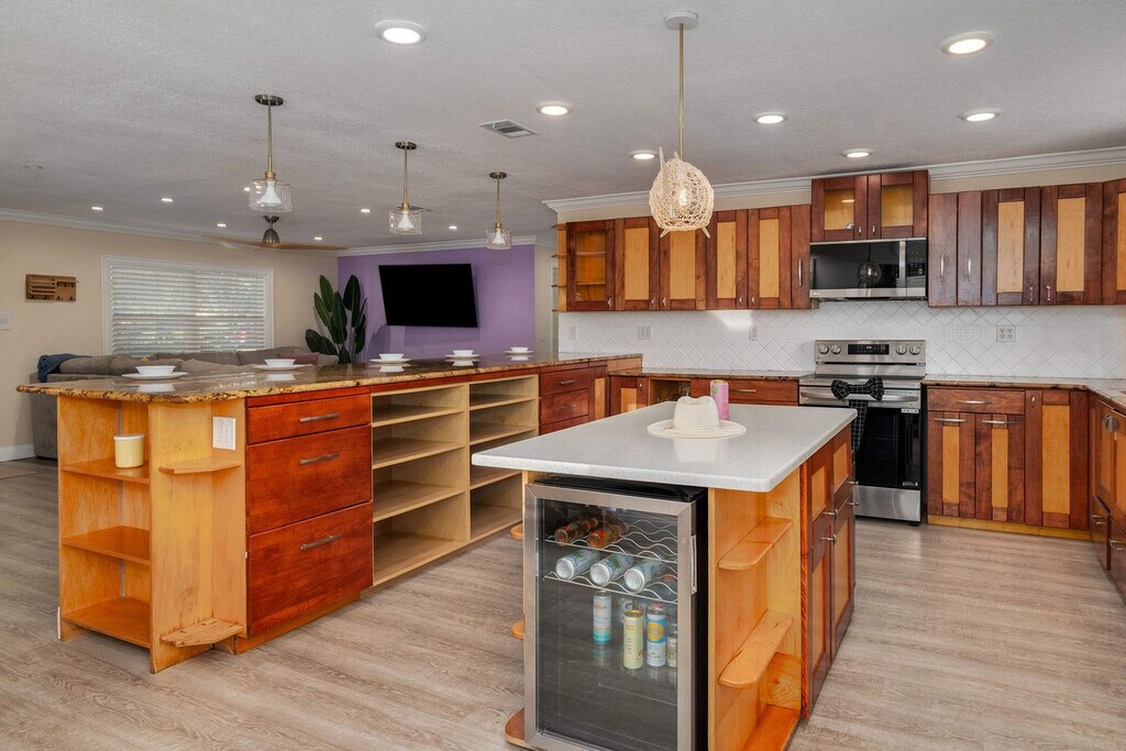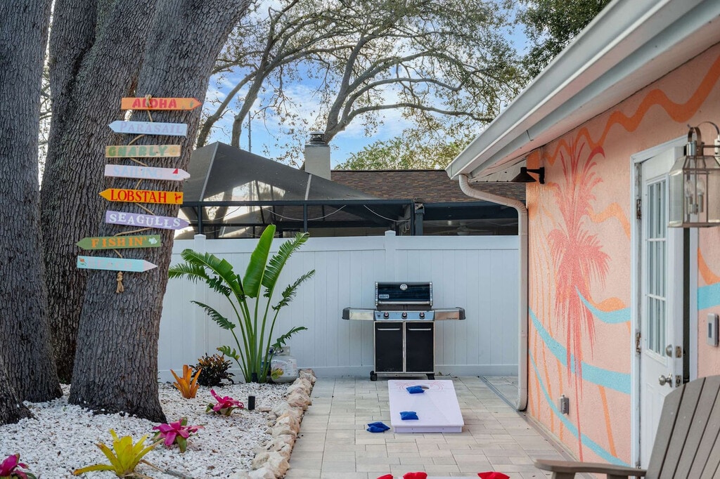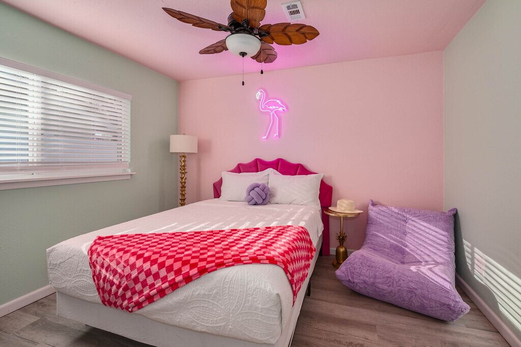 Escape to this vibrant and unique Seminole home, designed for ultimate relaxation and family fun. Feel at home in this property that offers a memorable stay with its playful decor and comfortable living spaces. This home features four spacious themed bedrooms, three full bathrooms, and a large living area. Enjoy the convenience of a free washer and dryer, a private pool, and an outdoor entertainment area. The large full kitchen is equipped with stainless steel appliances, and there is a spacious dining area and outdoor pool loungers. Challenge your family and friends to a game of cornhole or test your skills on the private putting green. It's the perfect space for sunny afternoons and starry nights. Driving is the most convenient and common way to get around Seminole and the wider Pinellas County area. Uber/Lyft are readily available and can be a good alternative. Biking is a good option for shorter distances and recreational purposes, and the Fred Marquis Pinellas Trail is a major multi-use path that runs for 75 miles through Pinellas County. You can easily rent bikes from local shops and use the trail to explore different communities and access cafes, shops, and parks. Taxis are also an option, though they are generally less common than rideshare services in the area. The neighborhood is known for its welcoming community and lush landscaping, offering a relaxed, suburban feel. Strategically located near everything you need, this home is just a short drive (3.5mi) from the pristine Gulf beaches, allowing for easy access to a coastal lifestyle. It is also 1.5mi to Seminole City Park and 3.5mi to St. Pete–Clearwater International Airport. The area is well-connected to major roads like Park Boulevard, making it easy to get around Pinellas County. You will have convenient access to a variety of shopping and dining options, with numerous restaurants, cafes, and a modern shopping center nearby. Grocery stores like Publix and Winn-Dixie are also in close proximity. Up to two cars may park side-to-side in the driveway in front of the garage. Please don't park on the grass, or alongside the streets parallel to another vehicle. Be considerate while socializing outdoors after 10pm and before 9am, and keep excessive noise to a minimum during this time. Only the number of guests indicated on the reservation are allowed to stay overnight on-premise, unless otherwise agreed upon in written form. There is absolutely no smoking and no drugs allowed inside the home or elsewhere on the property. We can accommodate a maximum of 7 guests at any given time. No third party bookings allowed, unless otherwise agreed upon in written form. No fireworks of any kind. No firearms on property, unless kept locked in vehicle. [SI]