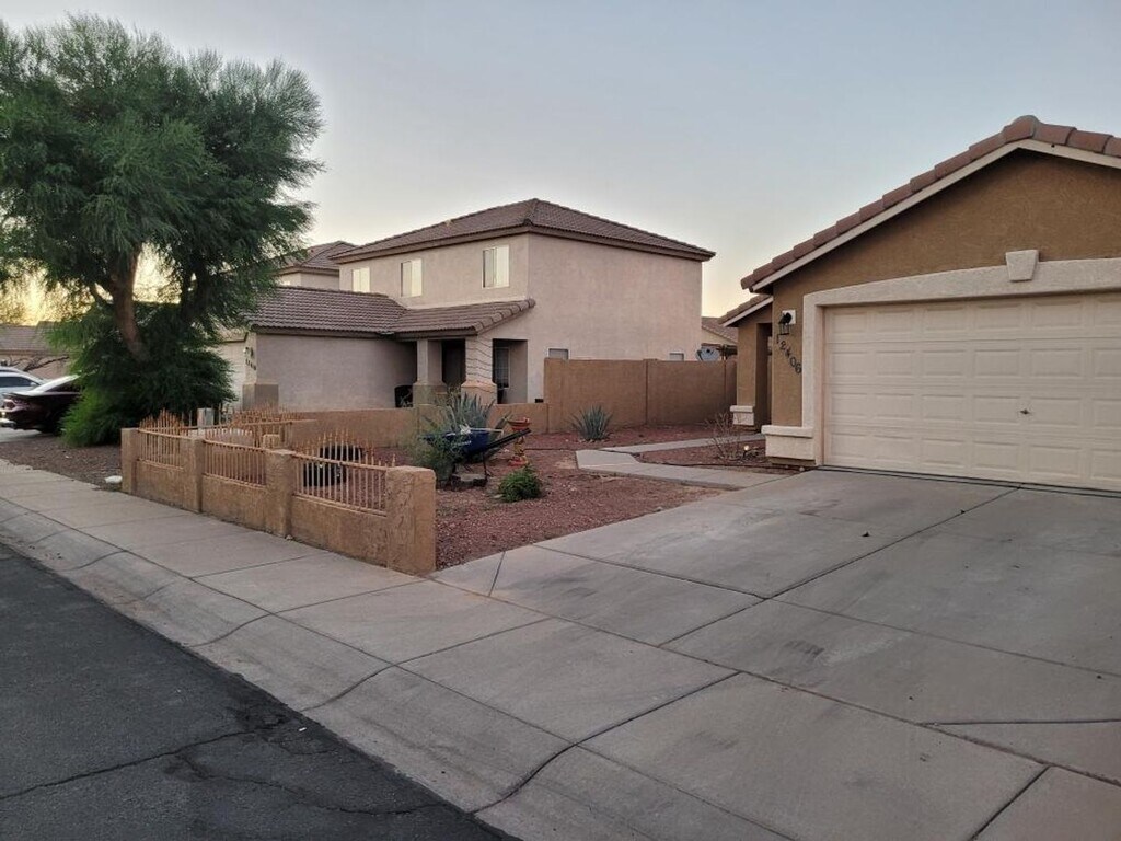 Beautiful 3-bedroom, 2-bath home with 1,183 square feet located in the heart of El Mirage. This home was built in 2002 and has been recently updated throughout. The property is just blocks away from a local elementary school, making it an ideal location for families. Inside, you’ll find brand-new flooring, fresh paint, and upgraded ceiling fans in every room. The kitchen comes equipped with a refrigerator, stove, dishwasher, and built-in microwave. Washer and drywer included! The backyard is beautifully designed with synthetic grass for easy, low-maintenance living—perfect for relaxing or entertaining guests. Additional details: Central A/C and heat Attached garage with driveway parking Dogs ONLY - Pet-friendly with a deposit Tenant is responsible for all utilities Rent is $1,599 per month with an equal security deposit of $1,599. A pet deposit of $500 applies. A one-time tenant placement fee of $200 will be charged at move-in. Rental Insurance requires No Smoking
