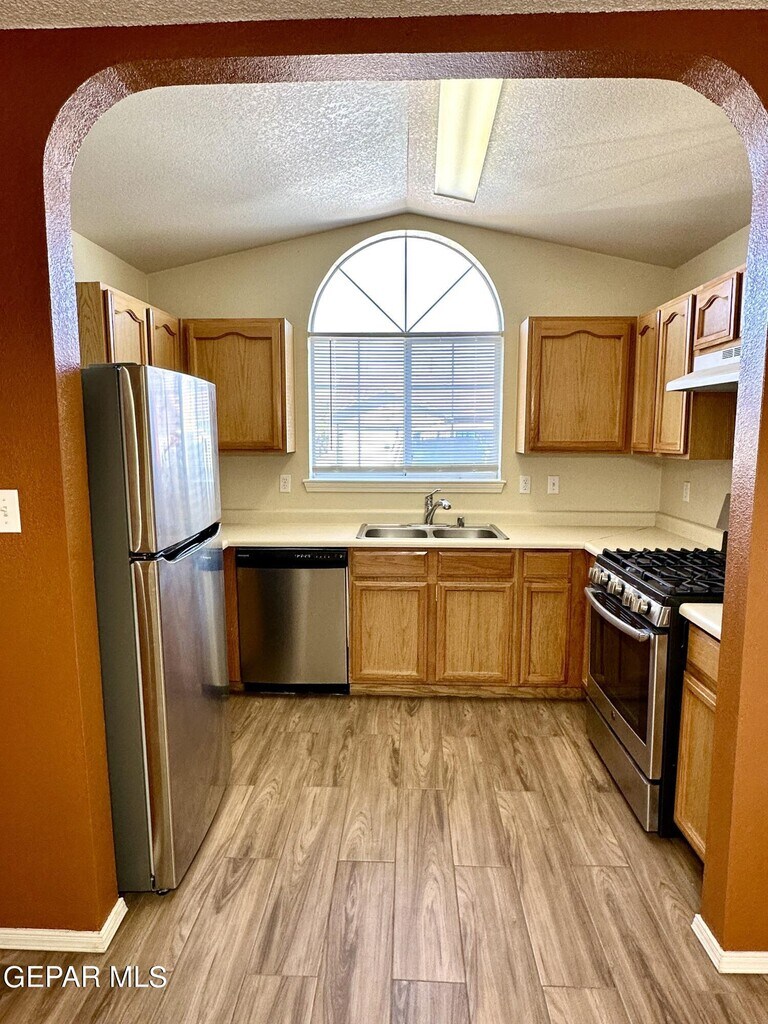 ***HOLIDAY RENT SPECIAL*** MOVE IN NOW WITH DEPOSIT & NO RENT UNTIL DEC 1ST*** 3BR,2 FULL BATH,1 CAR GARAGE . REFRIGERATED AIR-CONDITIONING & ALL APPLIANCES plus GARAGE w/Power Opener. Less than 1 mile from The Hospitals of Providence & only 15 min to Ft Bliss East Gate. Nice Open Floorplan Featuring Living - Dining Area to Kitchen with Updated Gas Stove,Stainless (super quiet) Dish Washer and a Stainless Refrigerator. 2 FULL BATHS makes this house completely Family Friendly. Cozy Main Bedroom (but a King Size Bed will actually fit) and a deep Walk-In closet and Private Bathroom makes it a Suite. The 1 car garage has washer/dryer connections + Storage Niche and a Fold Down Work Bench for those DIY projects. New,'Wood looking' Ceramic Tile through-out. Two New Toilets. 'Only 6min to Lowe's Home Improvement and Walmart Supercenter and all kinds of Restaurants,Conveniences,and just 1.5 miles to State of the Art Cinemark Theatre.