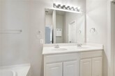 Ready for immediate move in! Come see this charming 4 bedroom and 2 bathroom home! The kitchen is equipped with ample cabinets, breakfast bar and generous counter space. Step inside this beautiful interior with neutral floors, plenty of natural light and neutral palette. The primary bedroom features plush carpet, a spacious closet and a private bathroom with dual sinks. Relax with your favorite drink in the fenced backyard with lush grass. Great community to live in as well with parks, playgrounds, pool and so much more.
