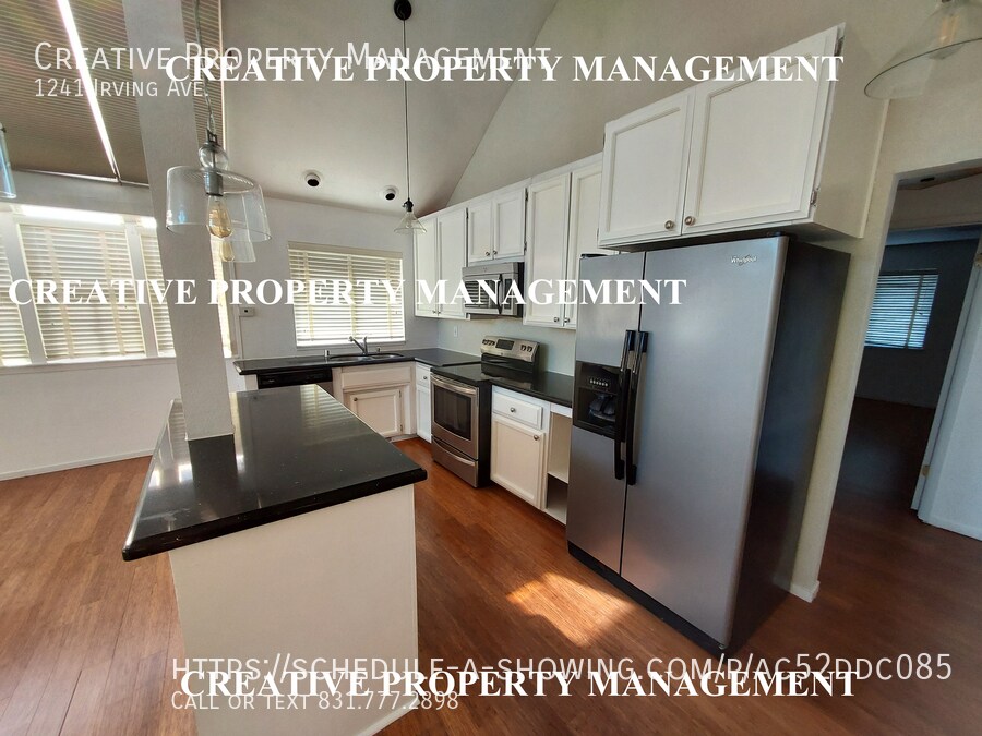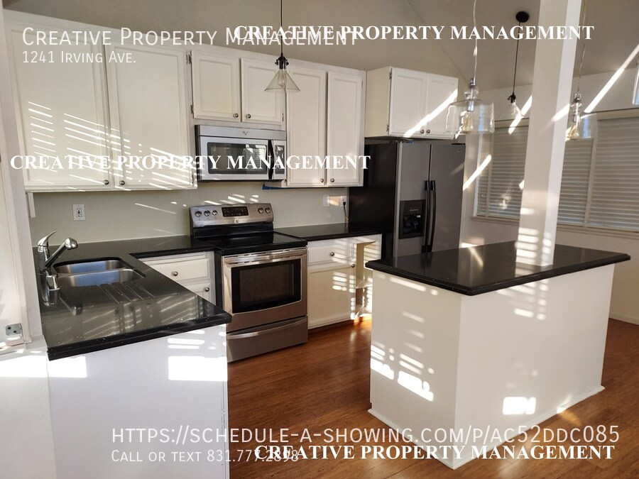 All Showings are self-showings - schedule on-line thru our website cpm1.us Schedule an appointment between 8:00am and 7:30pm daily. This single-family home is located in the New Monterey neighborhood of Monterey. It is a charming, updated two story house perched on a hillside, offering stunning views of Monterey Bay. A large skylight in the dining room provides great natural light throughout the living room, dining area and updated kitchen. It has two very spacious master bedrooms, on different floors and there are three full bathrooms and an attached single car garage. This wonderful property is located just blocks from the Pacific Ocean, the scenic coastal trail, Lover's Point Beach, and the iconic Monterey Bay Aquarium. The house can be accessed from driveway on Irving Ave. or access from Lily St. thru front gate. Deposit $4,175 1 Cat or Dog OK at $50/month No Cosigner's No Smoking