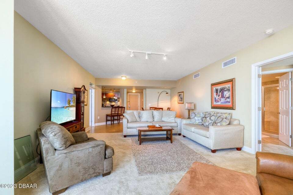 Furnished Two bedroom, Two bath luxury condominium with granite countertops and breakfast bar, stainless steel appliances, Italian cabinetry, large pantry, stacked washer/dryer in unit, large walk in closets, double sinks in the master bath, jetted tub and separate enclosed shower. SPECTACULAR VIEWS of the Halifax River from your private balcony with dual access points. Gorgeous resort style, 24-hour guard gated community with over 10,000 sq.ft. ***NO PETS***