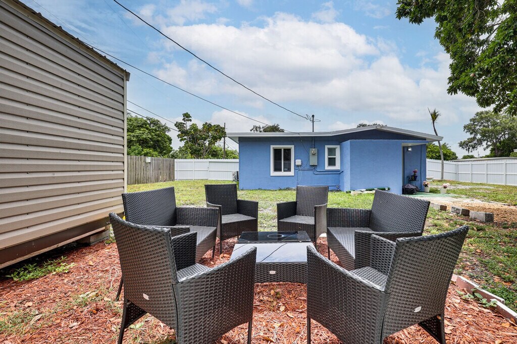 Make your next Miami adventure unforgettable with this inviting vacation rental, featuring 2 bedrooms and 1 bathroom. Feel at home in this single-story abode, which offers a perfect backyard for pets to roam and is just 6 miles from Hard Rock Stadium. Whether you're exploring iconic South Beach or sampling Wynwood’s vibrant scene, this home is your ideal base. This home is thoughtfully designed with smart TVs, a dining table, and a dedicated workspace. The kitchen is fully equipped with a refrigerator, stove, oven, microwave, Keurig coffee maker, and all the cooking basics, dishware, and flatware you need. Enjoy the fenced backyard with a fire pit and seating, perfect for relaxing after a day of adventure. Pets are welcome with a $100 fee plus additional fees and taxes. Parking is available in the driveway for up to 4 vehicles. Conveniently located, this home serves as a launchpad for fun in South Beach or evenings in Wynwood. Whether you're traveling for events or exploring art and dining, you'll find excitement, sun, and comfort just a short drive away. This property features a Ring doorbell with an exterior security camera facing the front outdoor entry, recording video when motion is detected or when the doorbell is pressed. Quiet hours are observed from 10:00 PM to 7:00 AM. No smoking, events, parties, or large gatherings are allowed. Guests must be at least 18 years old to book, and photo ID may be required upon check-in. Includes a dedicated workspace and free WiFi, making it remote work-friendly. A laptop computer is not included. Registration Number: U [SI]