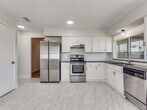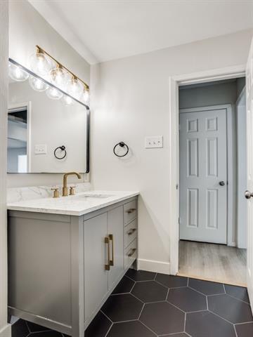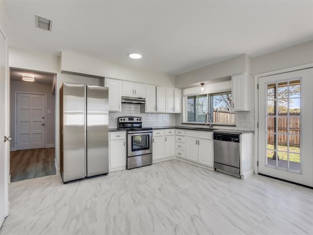Stunning, fully remodeled 3-bedroom, 2-bath home offering a bright, open-concept layout and a 2-car garage in highly desirable North Garland. Ideally situated with quick access to George Bush Turnpike and just minutes from Firewheel Town Center’s premier shopping and dining. This move-in-ready home has been thoughtfully updated from top to bottom with a warm, modern aesthetic. The expansive kitchen is a true showstopper, featuring granite countertops, a classic white subway tile backsplash, undermount sink, stainless steel appliances, a brand-new Samsung refrigerator with ice maker, and elegant marble-look porcelain tile flooring. A spacious breakfast nook and direct access to the covered patio make it perfect for both everyday living and entertaining. Throughout the home, you’ll find luxury vinyl plank flooring, fresh designer paint, updated lighting, cordless window shades, and the removal of all popcorn ceilings for a clean, contemporary feel. The inviting living room boasts vaulted ceilings, a cozy fireplace, and an abundance of natural light. The beautifully updated full guest bathroom showcases stylish hexagon tile, bathtub, a decorative vanity, and chic brushed gold fixtures. The primary suite is a true retreat with a walk-in closet and featurres a completely renovated en-suite bath (2026) with a spa-like walk-in shower, marble shower flooring, frameless glass enclosure, dual sinks, matte black fixtures, rainfall showerhead, and a white oak vanity with tons of storage. Major system upgrades include energy-efficient black-framed windows (2026) and a new HVAC system (2025), providing comfort and peace of mind. Located on a large corner lot with fresh front landscaping and great curb appeal, the home also features a covered back patio perfect for outdoor living and entertaining. This exceptional home truly has it all- style, function, and location. A must-see!