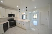 Property Information: Newly built home; 3 bedroom / 2 bathroom and one half bathroom that can be access through the lanai with metallic color standing seam roof that has a 35 yr warranty. 48x24 Porcelain floors all throughout home,high efficiency home with insulated high impact windows,doors,LED lights throughout home,and high efficiency 16 seer A/C. Quartz counter tops. Car garage with automatic opener that may connect via internet. Has wide & illuminated laundry room with a quartz countertop & sink,washer & dryer hook up with plenty of wall cabinets. Enormous master bedroom with large master bathroom with stand-alone tub and shower. A true must see.