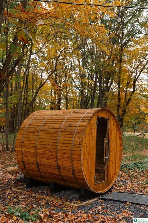 Fully furnished and beautifully remodeled 3-bedroom, 2 Full bath split-level Chalet available for rent beginning January 15th. This contemporary-designed home offers comfort, style, and convenience in one perfect package. Step through the covered entrance into a welcoming ground-level foyer that leads to a fully remodeled bathroom and laundry room. Up one level, the bright and airy living room features an open-concept layout, large windows, beamed ceilings, hardwood floors, and a wood-burning fireplace. The adjoining dining area flows into a modern kitchen with butcher block countertops and ample cabinetry. On the next level, you'll find two spacious bedrooms—one with a private balcony—along with another remodeled full bathroom. Both rooms feature vaulted ceilings, wood floors, and split A/C units for year-round comfort and privacy. The third bedroom, located on the uppermost level, offers vaulted ceilings and a perfect blend of rustic charm and modern luxury. Enjoy the outdoors with a large Porch, Hot tub, Sauna, and Fire pit, ideal for relaxing or entertaining .Located in a commuter-friendly area, just minutes from shopping, Kalahari Resort, Camelback, and other popular Pocono attractions. Pets are considered, depending on breed and number of the pets.