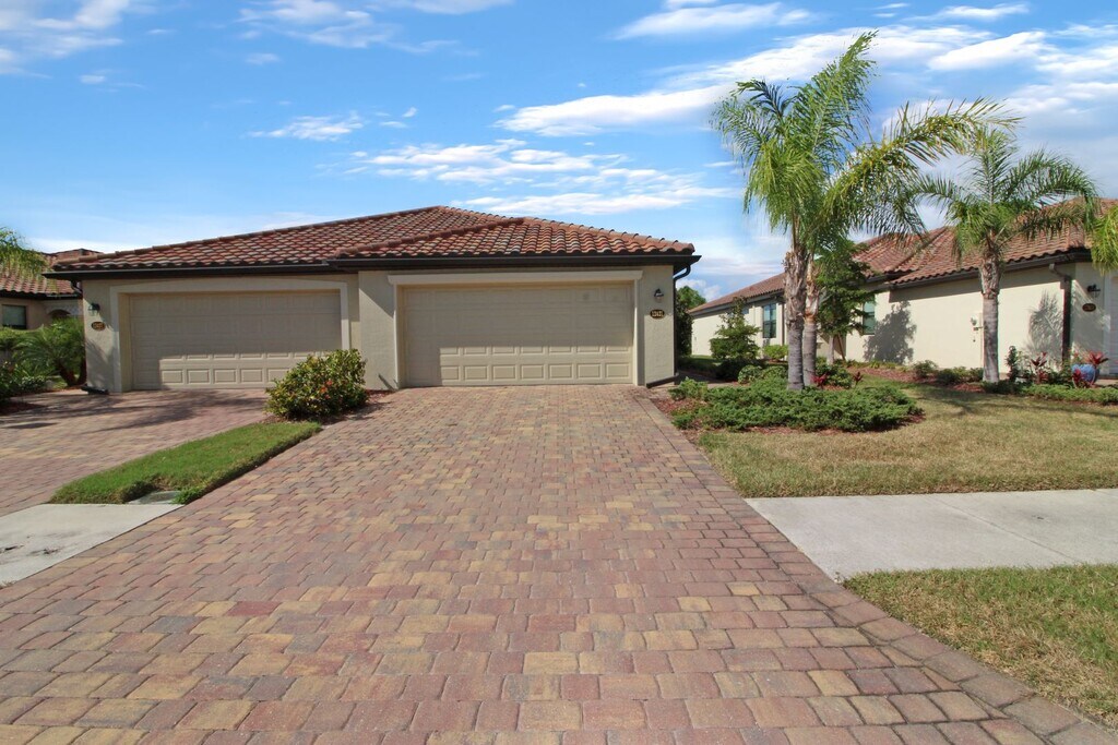 Welcome to your new slice of paradise, nestled within the sought after community of Gran Paradiso. Indulge in the best of Florida living in this impeccably crafted 2-bedroom, 2-bathroom villa. As you step through the front door, a flexible den space presents itself, ready to serve as your serene home office or a quaint reading retreat. The heart of the home radiates warmth and sophistication, boasting new luxury plank flooring in the master bedroom, and an open layout that invites natural light to dance across the rooms. Your private screened-in lanai beckons for leisurely mornings sipping coffee or evenings spent entertaining under the stars, all within the comfort of your own home. Your vehicles are well-accommodated with a spacious 2-car garage that doubles as extra storage for your beach gear and golf clubs. With basic cable included and the tenant only responsible for other utilities, this villa ensures a hassle-free lifestyle. Embrace the Gran Paradiso lifestyle, where a resort-style pool, spa, fitness center, and courts for pickleball, bocce ball, and tennis promise a daily dose of recreation and relaxation. Pet lovers rejoice as a dog will be considered with an additional deposit, making this the perfect home for the entire family. Situated near the burgeoning Wellen Park area, endless opportunities for dining, shopping, and entertainment are at your fingertips. Don't miss out on the chance to become a part of this exclusive community where luxury meets convenience. Your Gran Paradiso annual villa awaits! Disclosure: Ceiling fans are being installed in the bedrooms, and curtains will soon be added to the sliders—creating a warm and welcoming space.