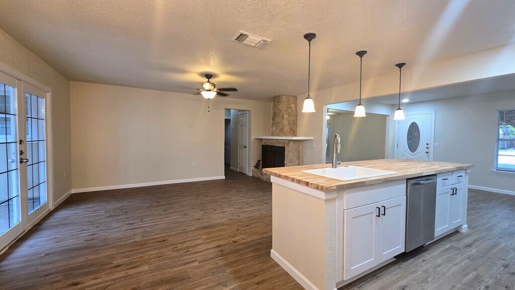 Located in NE San Antonio's El Dorado neighborhood you will find this gorgeous single story home in established neighborhood. Interior newly updated offering very open floorplan. Freshly painted interior with all new LVP faux wood flooring throughout. Kitchen and bathrooms all new! Completely upgraded kitchen w/gas range, stainless appliances and more. Attached two-car garage with ample cabinet space perfect for all your projects. Backyard boast cover and uncovered patio space, storage shed and mature greenery. Schedule tour to see soon, before it's gone. Clothes washer and dryer included! Small water pond feature in backyard. Large storage shed out back.