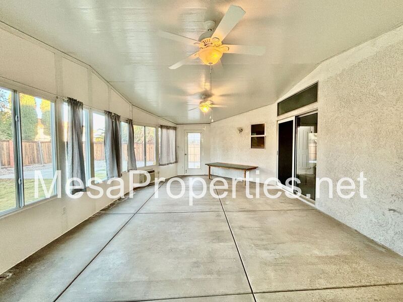 The residence features four bedrooms and two bathrooms. Upon entering through the double door entryway, you are greeted by a spacious living area with a dual-sided fireplace that separates the living room from the family room. Adjacent to the entry and opposite the living room is the first of the four bedrooms. The spacious kitchen boasts ample cabinet space, a substantial island, and numerous countertops. The dining area is situated adjacent to the kitchen, with a sliding door leading the the large enclosed patio. The dining area also seamlessly transitions into the family room. Down the hallway, you will find two additional well-sized bedrooms and a full bathroom and the large master bedroom, which has its own private bathroom, walk-in closet, and bonus closet, is particularly spacious. The master bedroom also features a sliding door that leads to the large, enclosed patio. Outside the enclosed patio you will find a beautifully landscaped back yard with grass and rock. This home has washer and dryer hookups in the laundry room with direct access to the large detached 3-car garage which is prefect for that extra vehicle or additional storage space. The home has the added benefit of being equipped with AC to keep you comfortable. Tenant is responsible for all utilities Electric, gas, water, trash. This property is available to view by appointment, without an agent, via Tenant Turner. In order to view this home, you must visit our website at select this property, and click the button to Schedule a Showing. Once you answer the pre-screening questions through Tenant Turner and upload your ID, we will contact you to schedule an appointment for you to view the home. If the home is not ready for viewing, you will be added to a waitlist and will receive a text message as soon as it is available. Please do not visit the home without a scheduled appointment. Please do not call us to inquire about viewing the home if you have not followed these instructions. All Mesa Properties residents are enrolled in the Resident Benefits Package (RBP) for an additional $39.95/month which includes renters insurance, HVAC air filter delivery (for applicable properties), credit building to help boost your credit score with timely rent payments, $1M Identity Protection, move-in concierge service making utility connection and home service setup a breeze during your move-in, our best-in-class resident rewards program, and much more! More details upon application. This additional $39.95 fee is payable monthly on the first with rent. For more information or to schedule a showing please visit Listing by: Mesa Properties Inc. 12555-A Mariposa Rd. Victorville, CA 92395 DRE 01884617