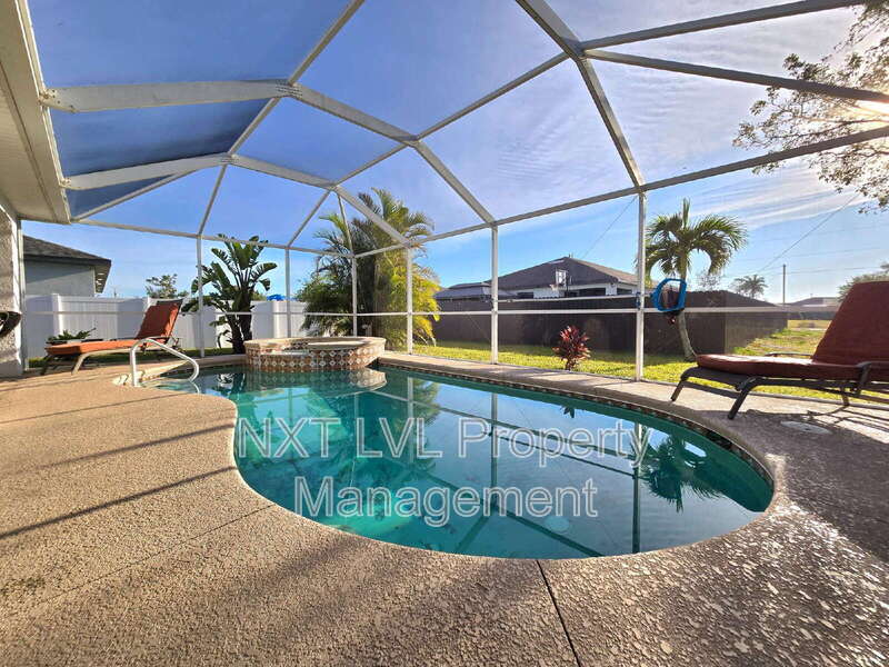 1243 NW 22nd Ave ~ Heated Cape Coral Pool Home HEATED POOL | MINIMALLY FURNISHED This large, light + bright home offers 3 bedrooms, 2 bathrooms, and 1,274 square feet of living space with an attached 2 car garage. Open floor plan with beautiful triple door sliding glass windows to enjoy a cup of coffee in your extra-large screened in lanai. The bedrooms are split, and the master bath features a walk-in closet with dual sinks. NOTE: spa fills up, however jets are inoperable* UTILITIES/SERVICES INCLUDED: Trash, pool, lawn, well water (tenant responsible for salt service) APPLIANCES PROVIDED: Fridge, range, microwave, dishwasher, washer, and dryer PARKING: 2 Car Garage/Driveway (no parking in the grass) PET RESTRICTIONS: With approval through our Pet Screening process GENERAL REQUIREMENTS: + Application fee is $55 per adult, + Each applicant must have a minimum of 650 credit score, + Combined monthly income 2.5x the rent amount ($6,250), + Security Deposit 1.5x the rent amount ($3,800), + No evictions, active bankruptcies, or co-signers accepted, + Pet or NO pets: Pet Screening process is required for verification (refundable $500 pet deposit per pet, and monthly pet rent of $20 per pet) + Resident Benefit Package (RBP) fee of $50 per month is required (includes bi-monthly AC filter delivery, rental payment history credit building, renter’s insurance, and convenient online services), + Terms and conditions provided are considered reliable, however, not guaranteed, and are subject to change. **Approximate move-in costs $6,470 (rent, deposit, move-in fees)** To SCHEDULE A VIEWING, CALL: 239*744*2205 NXT LVL Property Management, LLC. Fort Myers, Florida
