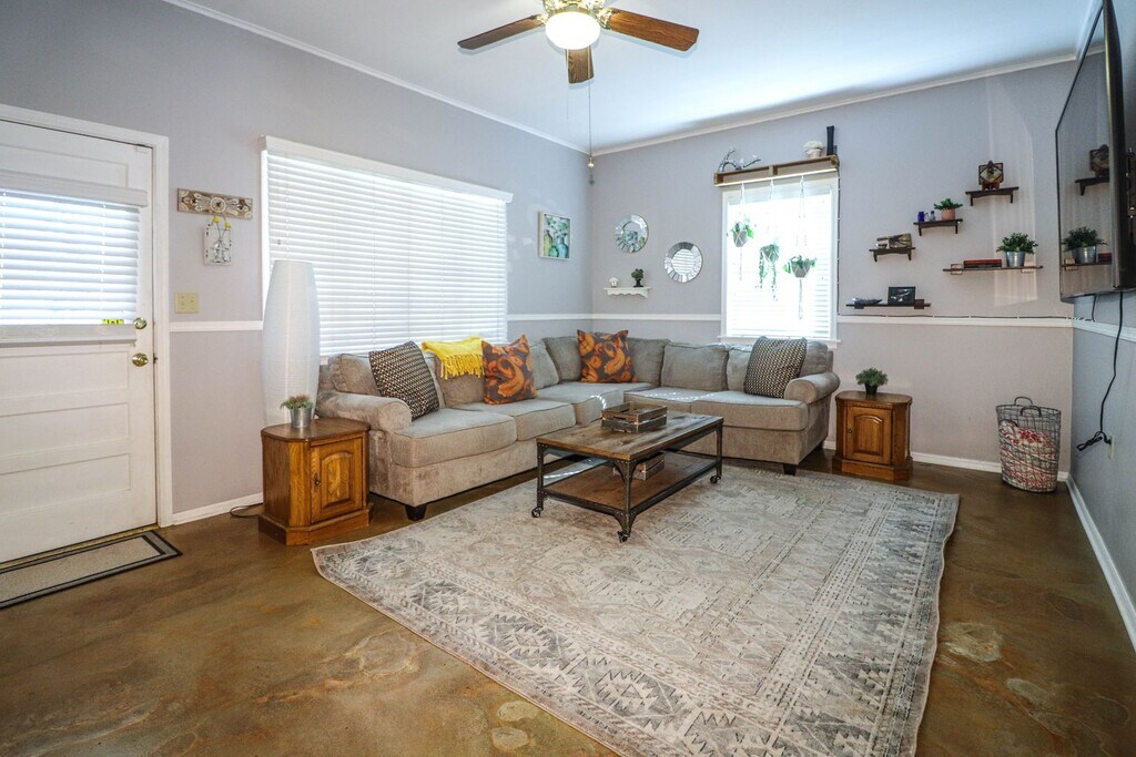 Midtown Cozy Bungalow with stone accent and decorative fireplace. 2 nice living areas, including TV in 2nd living area. Dining area open to living room and large kitchen with Fridge (not warranted). Larger utility room with washer/dryer (not warranted). Screened in back porch, and nice backyard with fire pit. Close to shopping and restaurants and within walking distance to fairgrounds. Please text agent Chris Fowler for code. $50 app fee for each adult over the age of 18. Small pets (no larger than 25lbs.) welcome, no aggressive breeds. Residential Service package at $20/ mo. required. Contact Chris Fowler for questions.