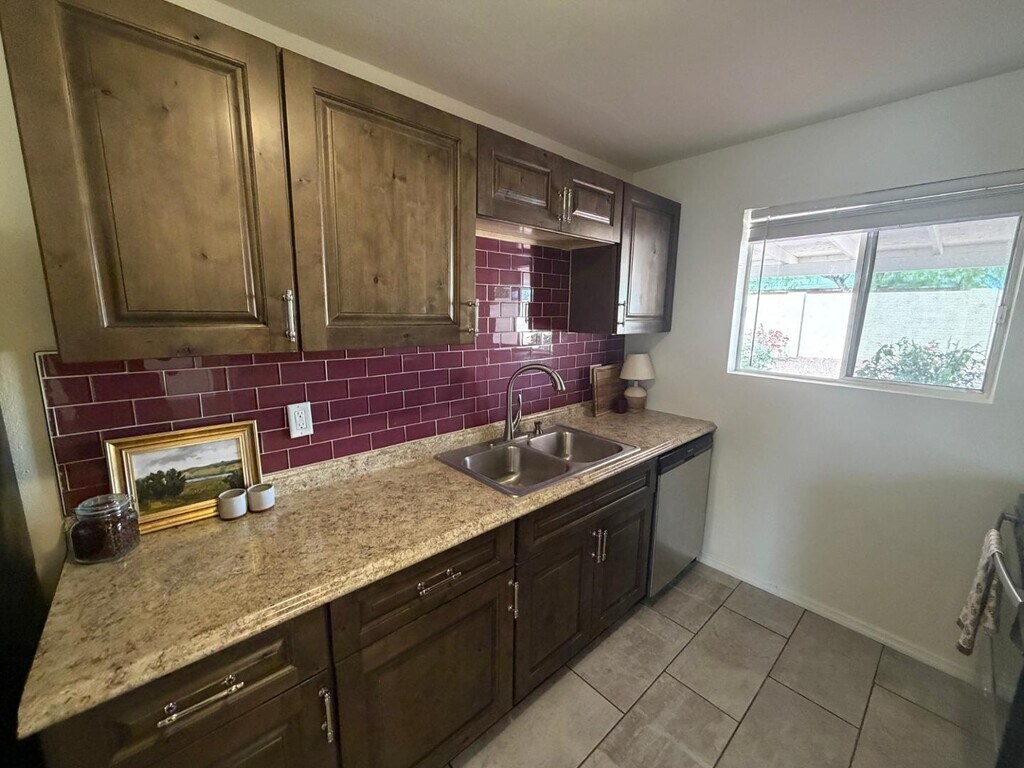 AVAILABLE FOR MOVE IN ASAP! 4 beds 2 baths. Great kitchen with new Modern Kitchen cabinets,backsplash and gorgeous tile stone floors. Brand newer stainless steel appliances. Bathrooms also renewed with designer mirrors,light fixtures and tile. A care free home. Easy care landscape. RV Gate in the rear of the property. Community surrounded by parks,play areas and easy transportation anywhere. Minutes to ASU & major freeways. Newly painted exterior and interior of the property. New ceiling fans throughout. New backsplash added in kitchen. New bathroom vanities,mirrors and bathroom light fixtures. New RV gate. Front & back patio newly stained and sealed. New blinds throughout!