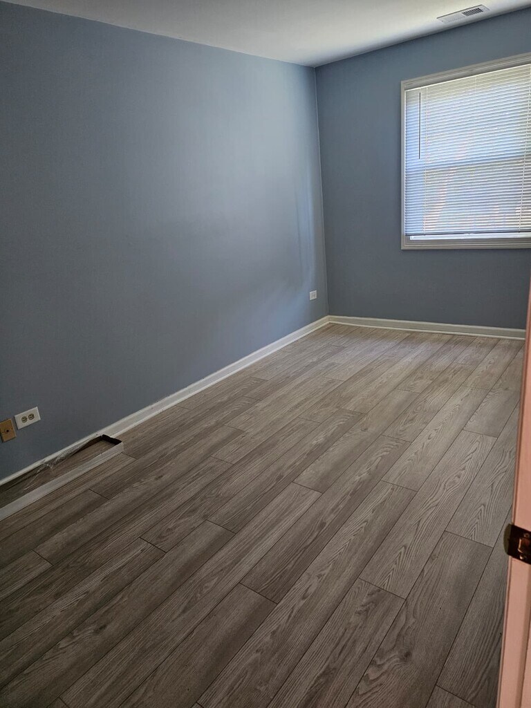 Beautifully updated townhouse located on a quiet cul-de-sac, overlooking open green space and a playground. Just steps away from the community pool and playground, this home combines comfort, convenience, and modern updates. Fresh and Inviting Interior: Newly installed wood laminate flooring throughout (except kitchen and bath), new carpet on stairs, fresh paint in soft neutral tones, and brand-new trim. Living Areas: Enclosed entry hallway opens into a bright living room with a modern feel. Updated Kitchen: Features an eating area, private balcony perfect for BBQ or relaxing, ceramic tile backsplash, tile flooring, updated light fixture and ceiling fan, and all appliances included. Bedrooms and Bath: Three bedrooms with custom blinds, brand-new closet and bedroom doors. Full bath includes quartz vanity top, new toilet, refinished tub/shower, new vinyl flooring, and updated fixtures. Mechanical Updates: 100-amp electric (updated 4 years ago), furnace and A/C (4 years), water heater (4 years). Parking and Storage: Attached 1-car garage plus driveway parking. Location Highlights: Quiet dead-end street, minutes to Metra, shopping, and restaurants.