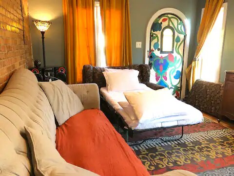 Property Id: 1514187 Antique & Crafted with the power of true love! King Bed! Downtown! Style! This “Chic and Unique” Bohemian Style Home Wants To Meet You! Authentic Charm & Character! Hand Exposed & Finished Brick Accent Wall, Original 1931 Refinished Wood Floor, Refinished Bath W/ Clawfoot Tub, & New kitchen! The 10+ years wed owners restored this home while raising their family for 8 years! Able Body Recommended. Stairs in out an elevated tub. Please only book if you like antique homes. Pets ( see rules ) Fully Furnished and Stocked for your stay!