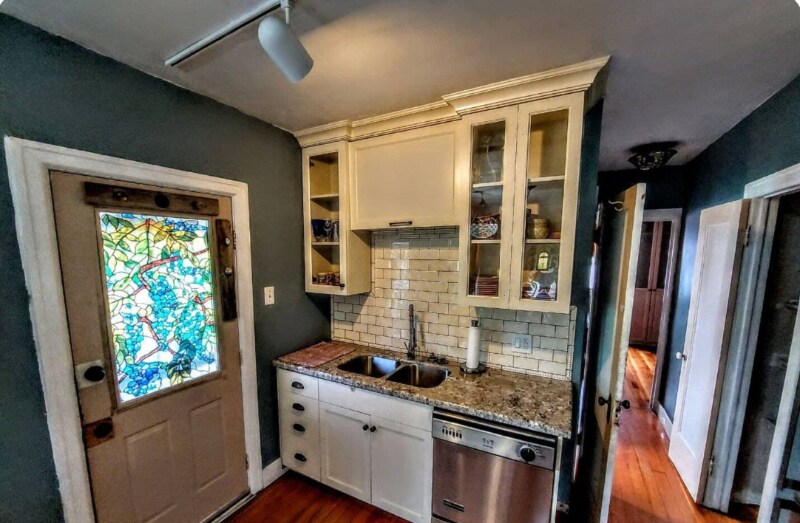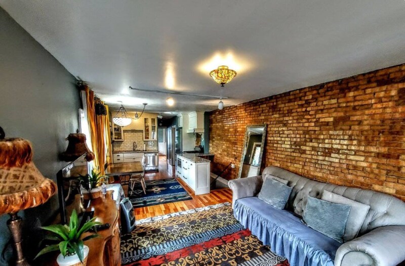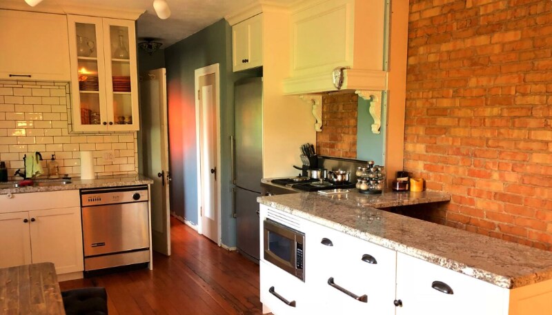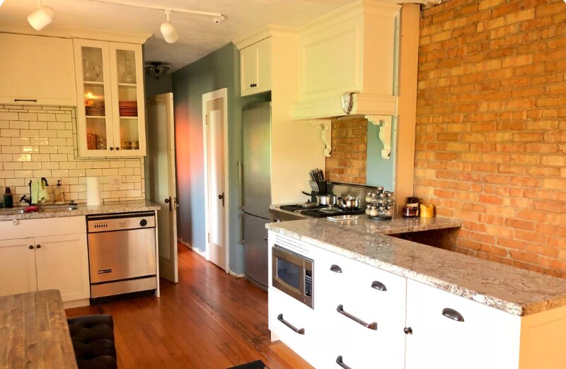 Property Id: 2299208 Welcome to our 1930s Antique Home, filled with original charm and character. This unique property features original doors and hardware, refinished antique floors, and exposed brick walls. Its vintage appeal and chic styling are perfect for guests who appreciate historic homes. If you’re looking for a brand-new build, this may not be the right fit—but we love its personality. Layout: • Main level: 1 bedroom, 1 bathroom, living room, dining area, and fully equipped kitchen • Basement level: 1 bedroom accessed via a steep staircase with a handrail and through an unfinished, industrial-style laundry/utility room Amenities include: High-speed WiFi, smart TV with Netflix, fully equipped kitchen, blackout curtains, laptop-friendly workspace, quiet neighborhood, central heating, window AC units, two off-street parking spots, and pet-friendly options (see rules). Ideal for long-term stays and comfortable staycations. The living room showcases an authentic hand-exposed brick wall that extends through the kitchen and into the primary bedroom, complemented by eclectic furnishings and unique lighting. The open layout allows the kitchen and living area to flow seamlessly, with a dining table for shared meals. The bathroom features a charming clawfoot soaking tub with chandelier lighting and an overhead rain shower. Please note the tub has a high lip and requires stepping over to enter. The primary bedroom includes a king-size memory-foam hypoallergenic mattress with professionally cleaned linens. Basement bedroom: Comfortable and clean, with one queen and one twin bed, marble checkered floors, wood paneling, string lights, a wardrobe, and gear storage. Cooler in summer, warmer in winter. A twin pull-out sofa bed is also available in the living room (guests set it up themselves). We kindly ask guests to wash dishes and dispose of trash in the outdoor bins at checkout so our cleaners can focus on sanitizing and linens. Thank you for respecting our much-loved home.