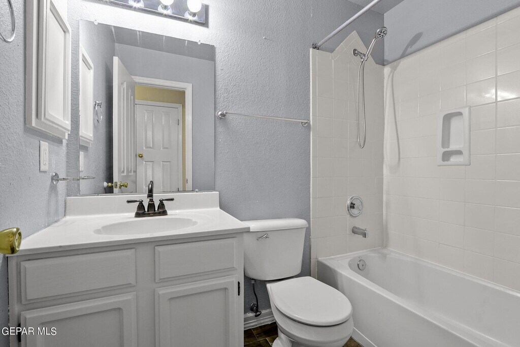 Amazing condition!! Single-story home offers 3 bedrooms and 2 bathrooms. Spacious living area with fireplace. Lots of natural light! Good size kitchen with granite countertops & island. Stove,refrigerator,microwave & dishwasher included. The primary bedroom offers a walk-in closet. Primary bathroom with tub and his and hers sinks & jetted tub. Good-sized bedrooms. Ceramic tile throughout. High vaulted ceilings. Good-sized yard with covered patio,extended cement area and side gates,easy care front and back yards. Perfect for enjoying family gatherings. Two-car garage with opener. The laundry room is located in the main hallway. REFRIGERATED AIR. Very nice curb appeal! Minutes away to loop 375. Close to schools,parks,shopping,and entertainment. Walking distance of Paso del Norte Elementary and just 5 minutes from El Dorado High School. Ft. Bliss is only 20 minutes away. Must see!!! AVAILABLE 11/01/2025.