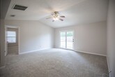 Spacious home features split bedroom floor plan with large great room, open dining room, and large fenced rear yard on corner lot. Freshly painted interior with new carpeting throughout. No pets