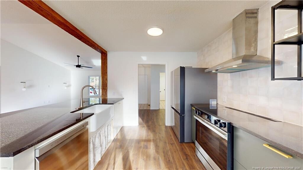 This stunning home is situated off of Monticello Dr. in the heart of Pinehurst with easy access to Southern Pines and Aberdeen. This recently updated ranch style home has modern features and unique touches. Walk in to an open and airy floorplan. The large main living area showcases vaulted ceilings and oversized windows providing plenty of natural lighting. The beautiful and open kitchen features stainless steel appliances, built in shelving, custom cabinets, granite countertops and an island. The master suite is on the opposite side of the home from the 2 guest bedrooms offering privacy and a quite space. The spacious master suite includes a huge walk in closet and a private bathroom with a double vanity and walk in shower. The 2 guest bedrooms feature accent walls giving the rooms an modern and sophisticated feel. Enjoy relaxing or entertaining on the roomy back deck with a view of the fully fenced in backyard. This immaculate home has so much charm and is available for an immediate move in.