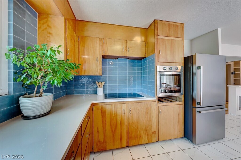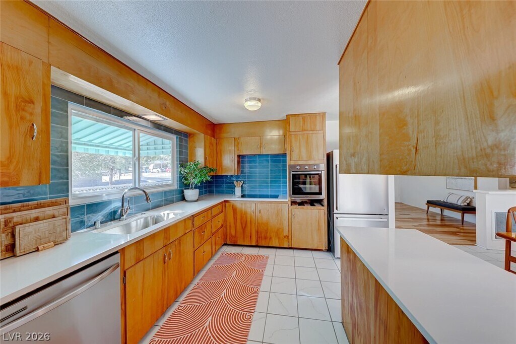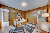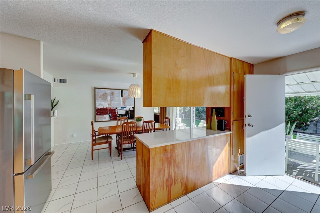 This enchanting single-story home is nestled on a scenic corner lot, offering a delightful blend of outdoor beauty and indoor comfort. Towering mature trees provide shade, while vibrant cacti and thoughtfully designed landscaping create an artful oasis. As you step through the front door, a cozy sitting room greets you, inviting you to relax in its warm ambiance. In the expansive backyard, a covered patio beckons for al fresco dining or leisurely afternoons, surrounded by an abundance of greenery that fosters a tranquil atmosphere. Inside, a charming den offers an ideal space for a home office or a quiet reading nook. The furnishings throughout the home reflect a retro chic style, adding a touch of nostalgia and character. The kitchen is a modern delight, equipped with sleek stainless steel appliances that blend functionality with contemporary flair. Home is staged but leased out without furnishings! 1 year/+ tenants!