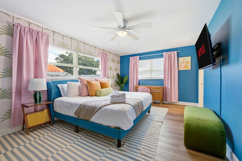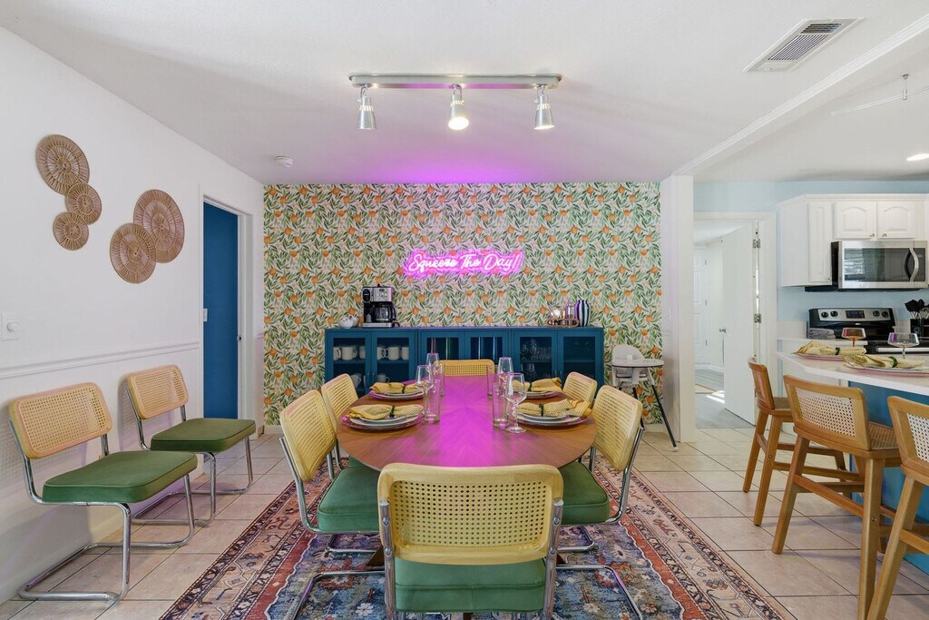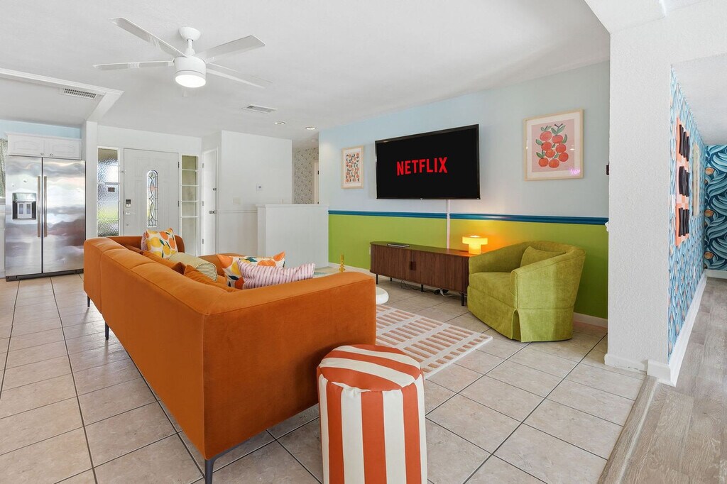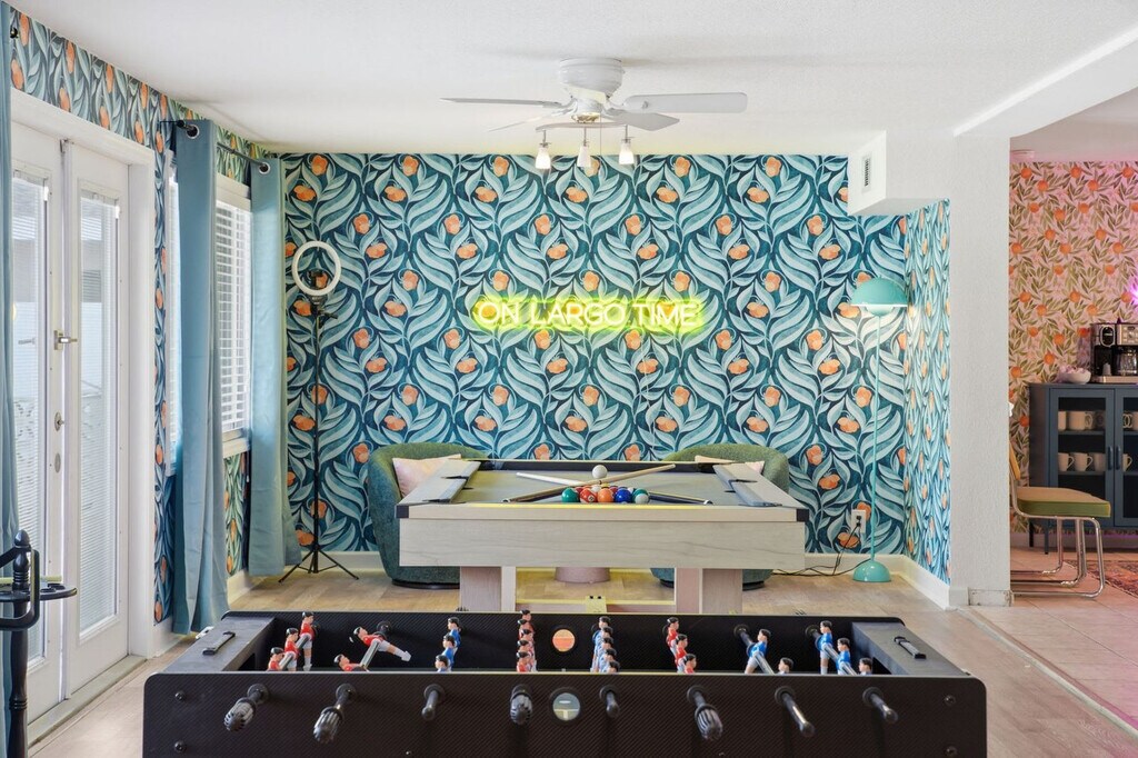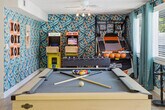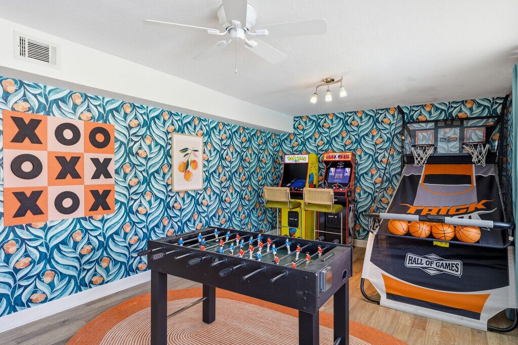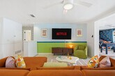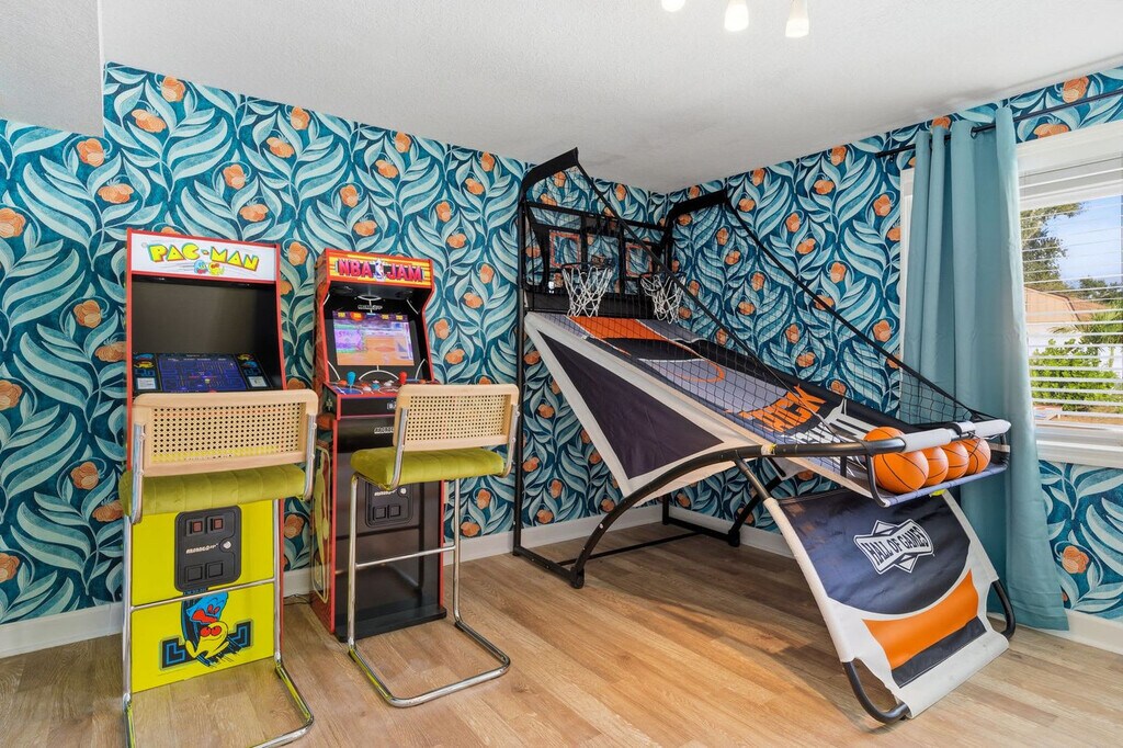 Feel at home in this 4-bedroom, 2-bath Largo retreat, built for fun, relaxation, and unforgettable memories! With space for up to 14 guests, this home is your private slice of paradise under the Florida sun. This home is jam-packed with amenities and has everything you need for an amazing vacation. It features a fully stocked kitchen with high-end stainless appliances, a large refrigerator, ample cabinetry and cooking space, and a coffee maker with Keurig, French press, and drip options. The living room has a 65” smart TV and a large plush sofa. The game room includes a foosball table, pool table, arcade games, and pop-a-shot. Enjoy the spectacular backyard and outdoor amenities, including a private pool, basketball court, fire pit, hot tub, putt-putt, corn hole, giant connect 4, outdoor patio, poolside basketball, beach essentials, and poolside loungers with umbrella. A high chair and pack ’n play are available. Nearby attractions include Salt Rock Grill, 4.3 miles away, Roosterfish Grill, 2.2 miles away, Maple Street Biscuit Company, 3.8 miles away, Guppy’s On The Beach, 4.6 miles away, and Villa Italia Pizzeria, 1.9 miles away. Explore the Florida Botanical Gardens, 2.6 miles away, Largo Central Park, 4.0 miles away, McGough Nature Park (The Turtle Park), 3.1 miles away, Pinellas County Heritage Village, 2.7 miles away, and St. Pete Pier, 18 miles away. Renting a car is a convenient option to explore the area at your own pace. Rideshare services like Uber and Lyft are readily available in the area. Check-in is at 4pm and check-out is at 10am. No parties are allowed—violations may result in immediate termination of the stay. Guests must be 25 years or older to book this property. Parking is available for 4 vehicles in the driveway. An exterior camera is installed solely to monitor the cleaning team for quality and security purposes. Includes a dedicated workspace in bedroom 1. [SI]
