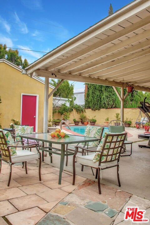 Tucked behind tall privacy hedges and surrounded by lush landscaping, sits a charming single-story home in the heart of Valley Village-- one of LA's most desirable and walkable neighborhoods. This well-maintained home offers a thoughtfully designed floor plan featuring a bright living room, cozy family room with fireplace, formal dining area, and a classic galley kitchen with side rose garden views. Three bedrooms with plenty of storage space, a bathroom with standing shower, and a larger bathroom with tub and shower complete a comfortable and very usable space. Natural light, original hardwood floors and fixtures add to the home's inviting character. The curb appeal is undeniable with a large front lawn, expansive rose gardens, and citrus trees. Step into the private backyard, where a sparkling pool and patio area await, ideal for BBQs, weekend relaxation, and gatherings. A detached garage offers potential for an ADU, home office, or creative space, providing future flexibility and value. With easy walkability to local shops, restaurants, and houses of worship, plus close proximity to major freeways, this home combines privacy, comfort, and unbeatable convenience in a sought-after neighborhood. MLS# 25607253