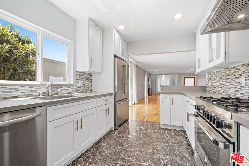 Enjoy the West Hollywood lifestyle in your private large sparkling pool on this gated home with 4 bedrooms and 3 bathrooms including a separate guest house, and a grassy backyard! It's great for entertaining open floor plan includes living, dining, family room all with gorgeous hardwood floors throughout, and modern fireplace. Newly remodeled kitchen with granite countertop w/ backsplash, stainless steel appliances and custom-made cabinetry opens up the dining area, making it a perfect entertaining space. The master suite has a direct access to a large veranda that overlooks the large pool area. Guest House is detached with full bathroom. Long gated driveway with remote control access for two cars. Lot is almost 6300 square ft. Enjoy the West Hollywood Lifestyle! MLS# 25570931